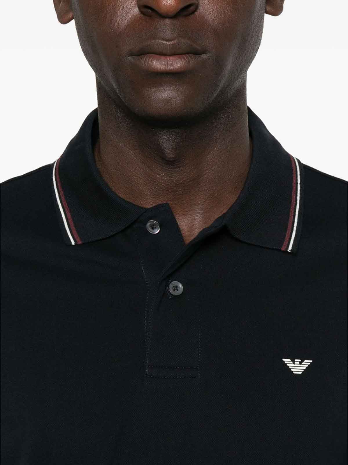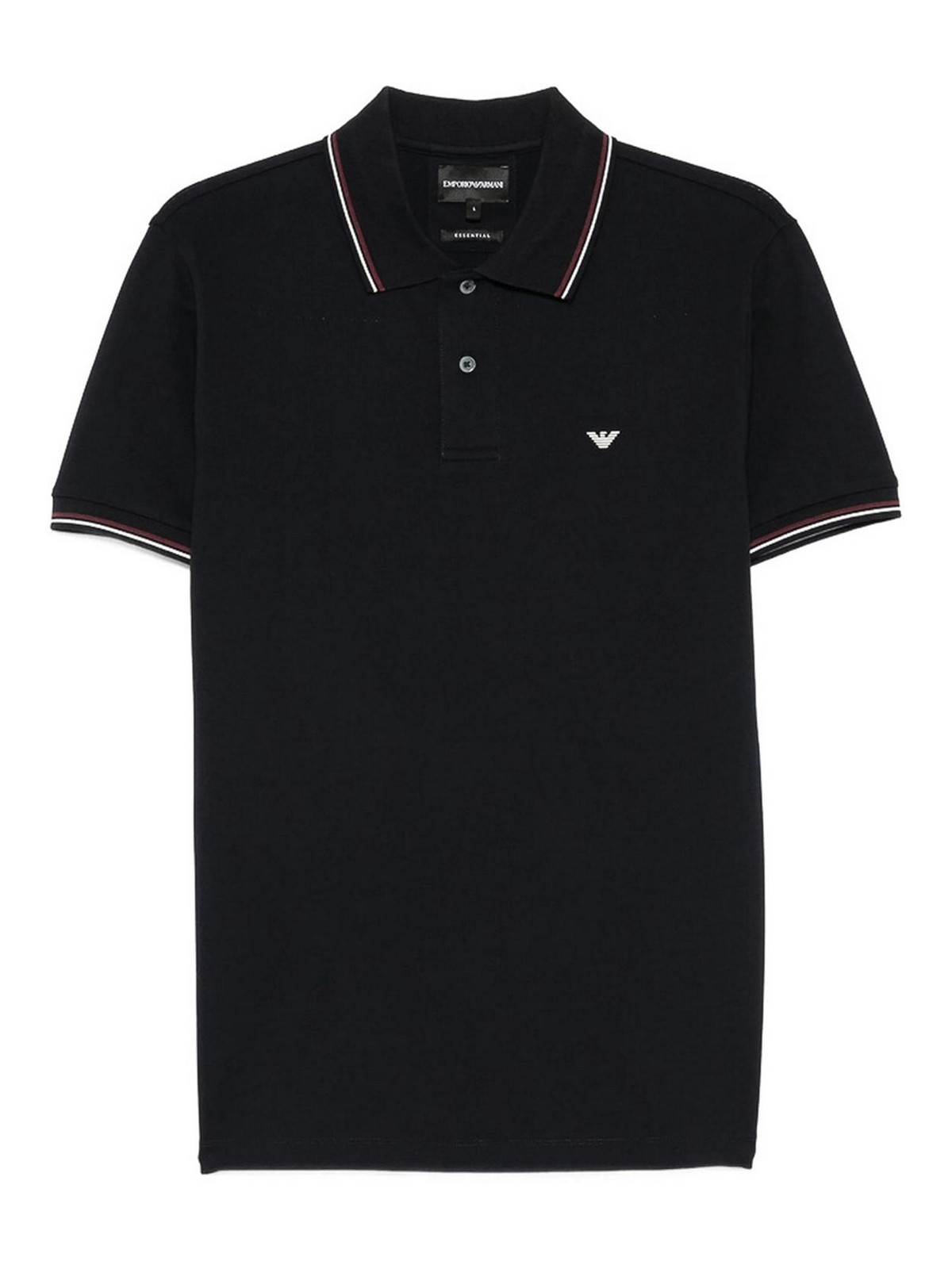 Navy blue eagle logo tipped collar short sleeves two, button placket straight hem, blend
