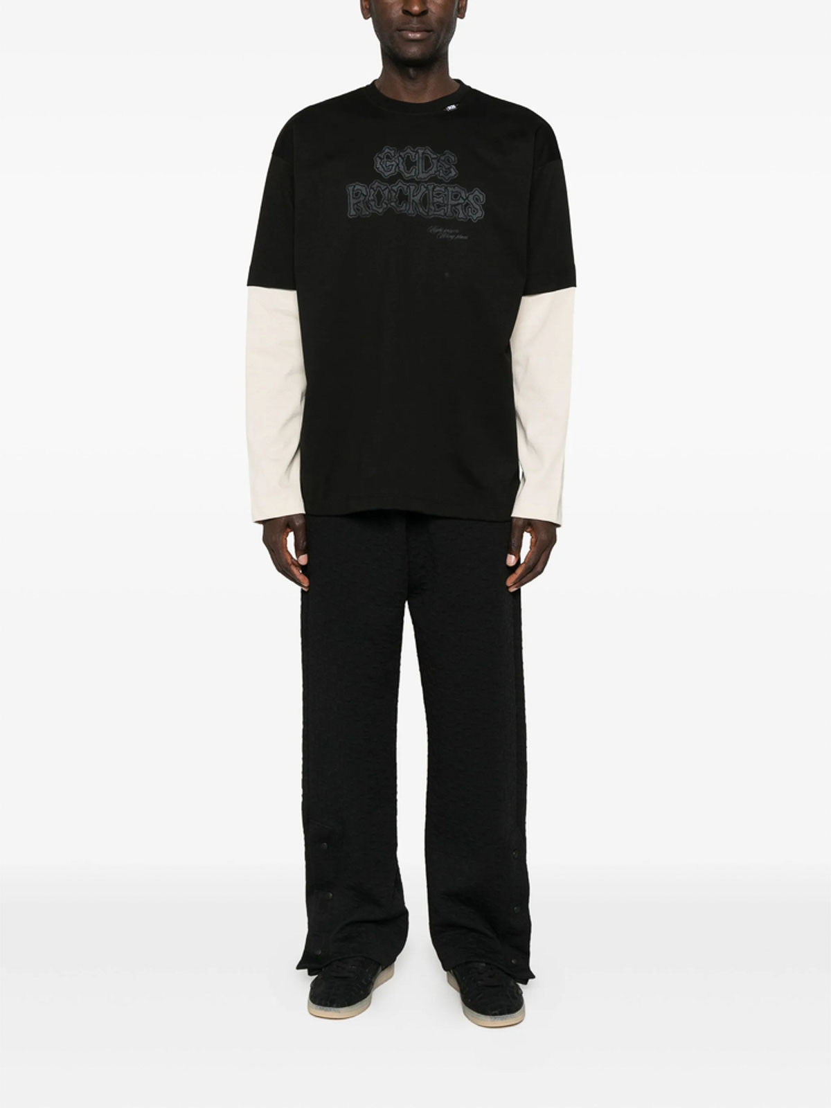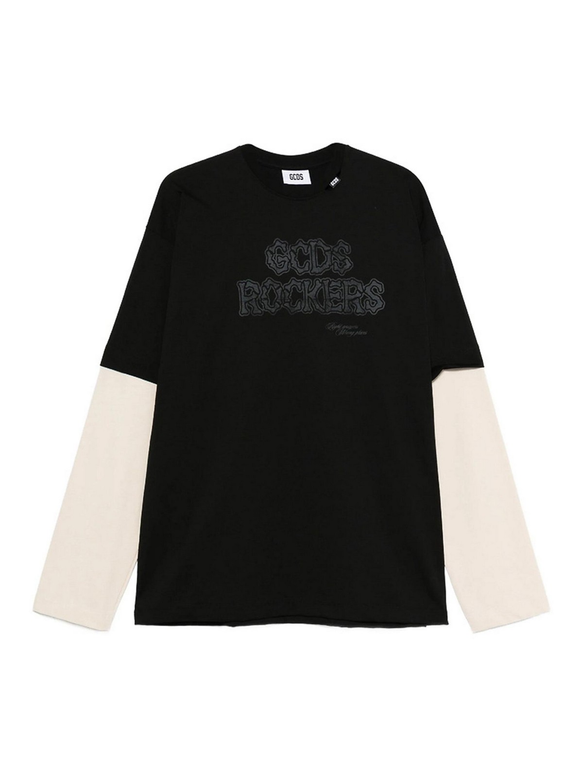Black logo print long sleeves round neck layered effect