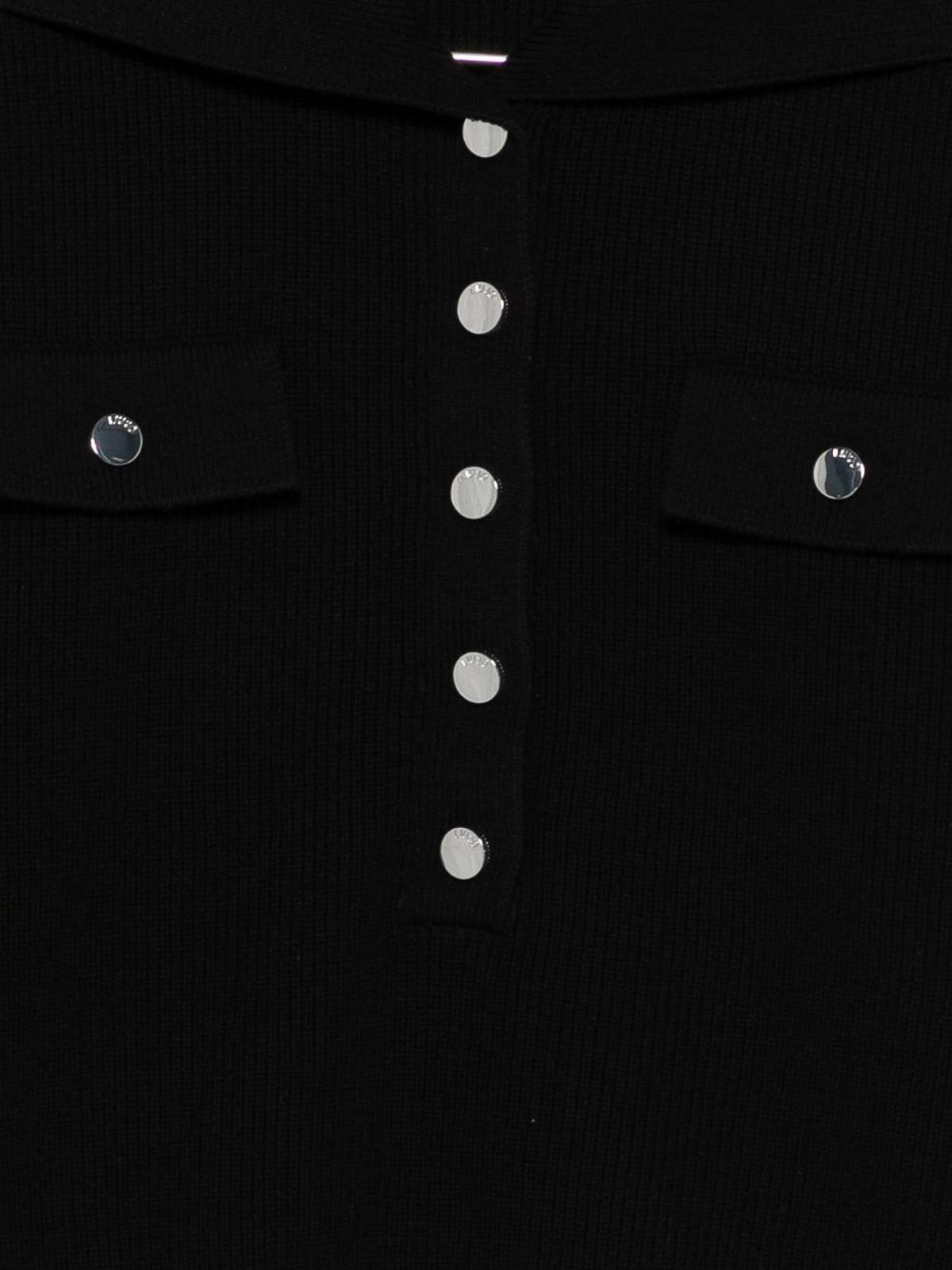 Black ribbed texture high collar button placket flap pockets button embellishments