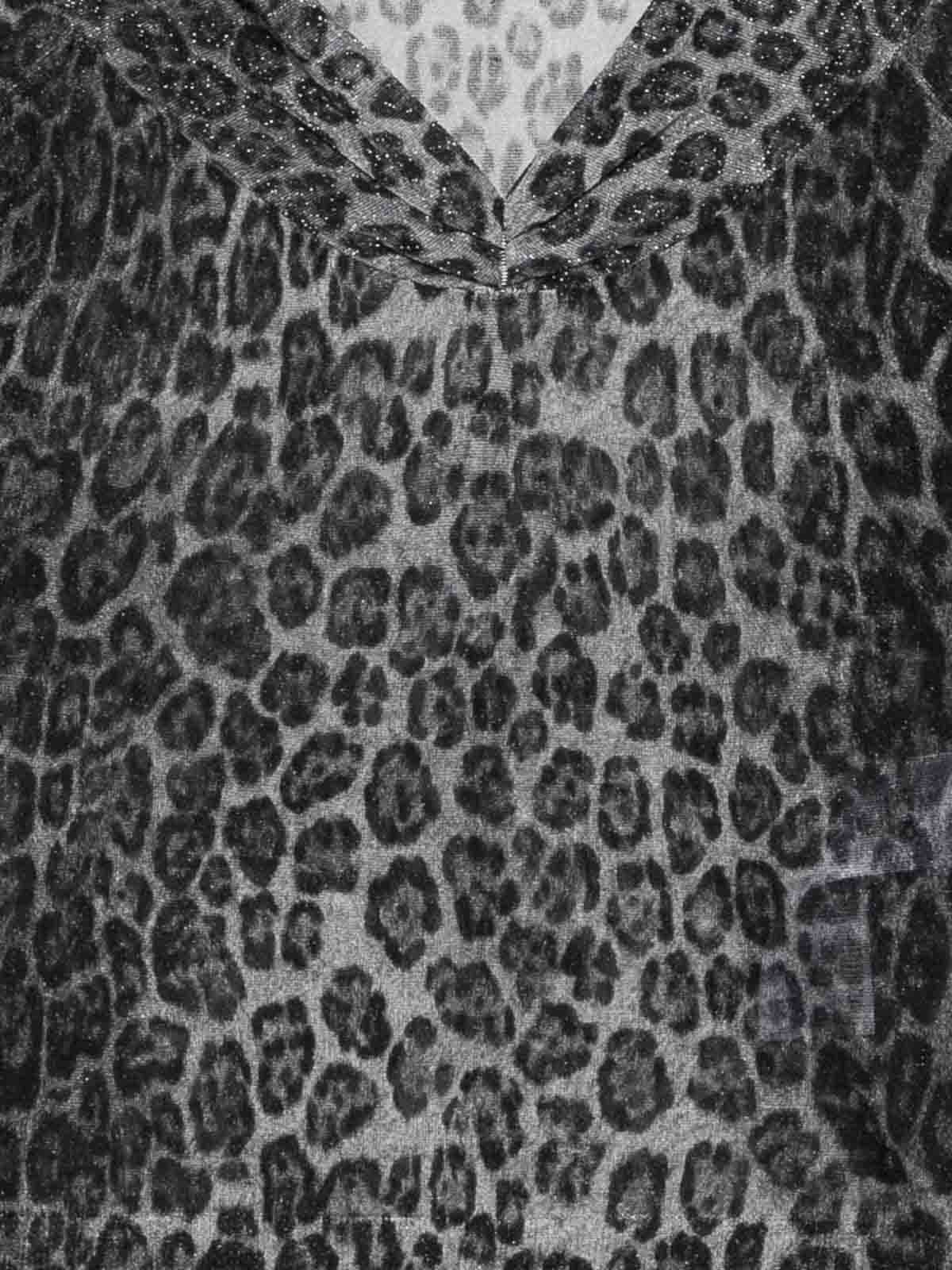 Grey leopard print hooded neckline three-quarter sleeves v-neck