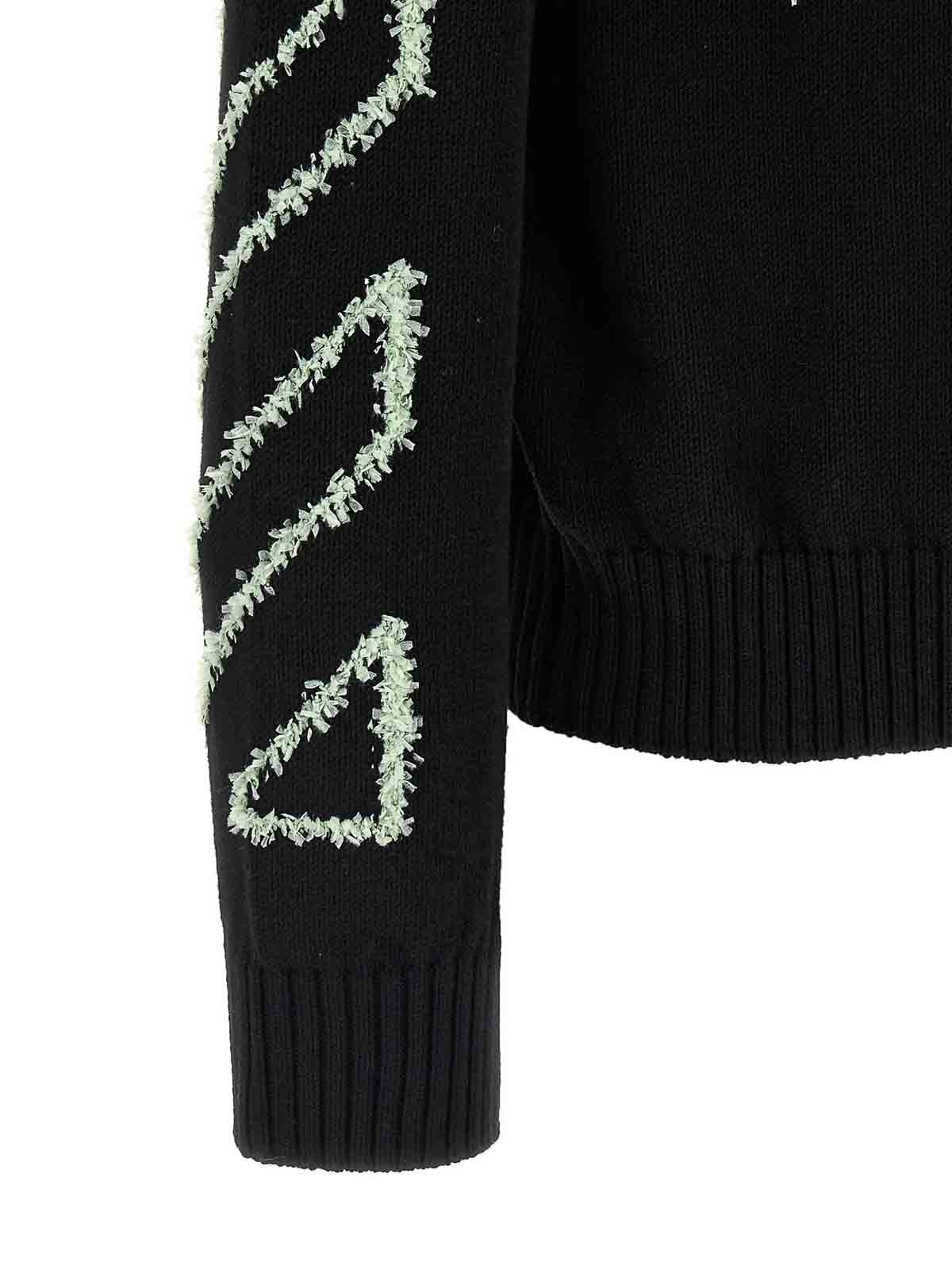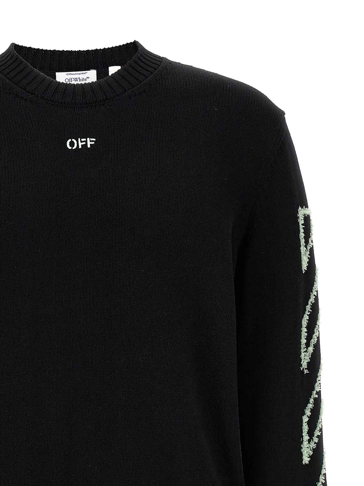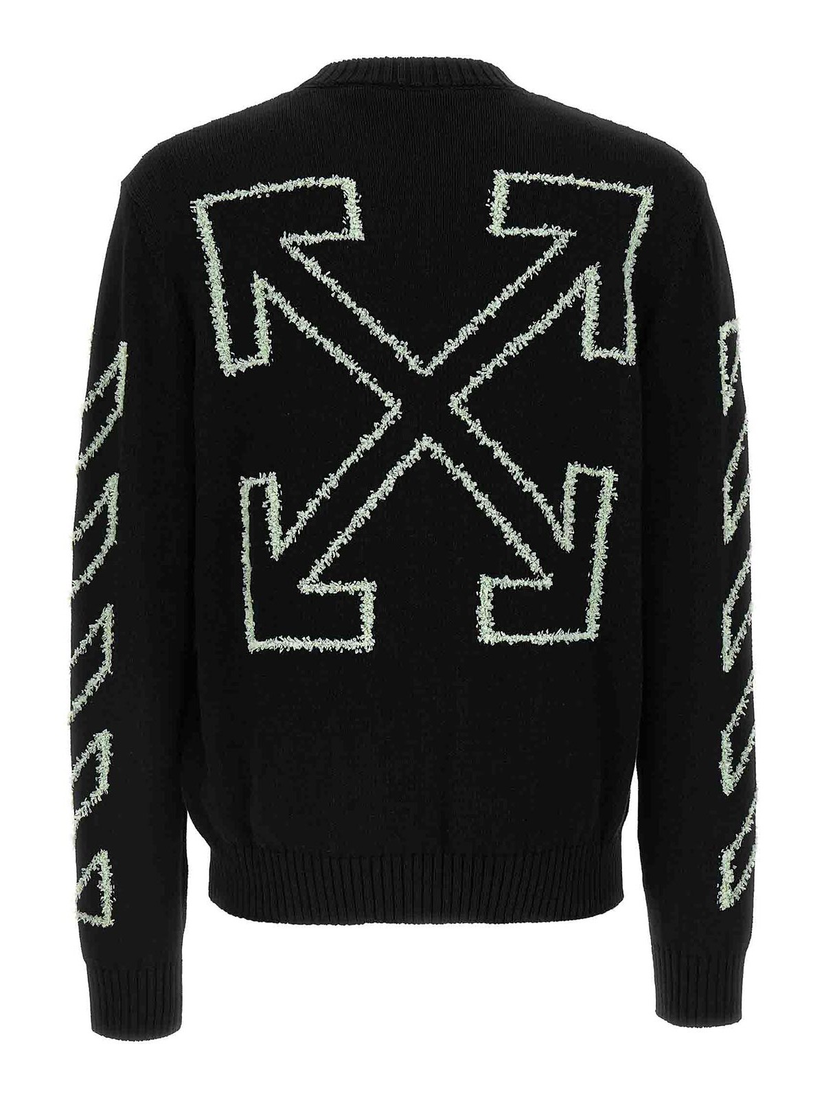 Knitted cotton sweater with 3d 'diag outline' inlays, front logo embroidery, crew neck, long cuffed sleeves and dropped shoulders.