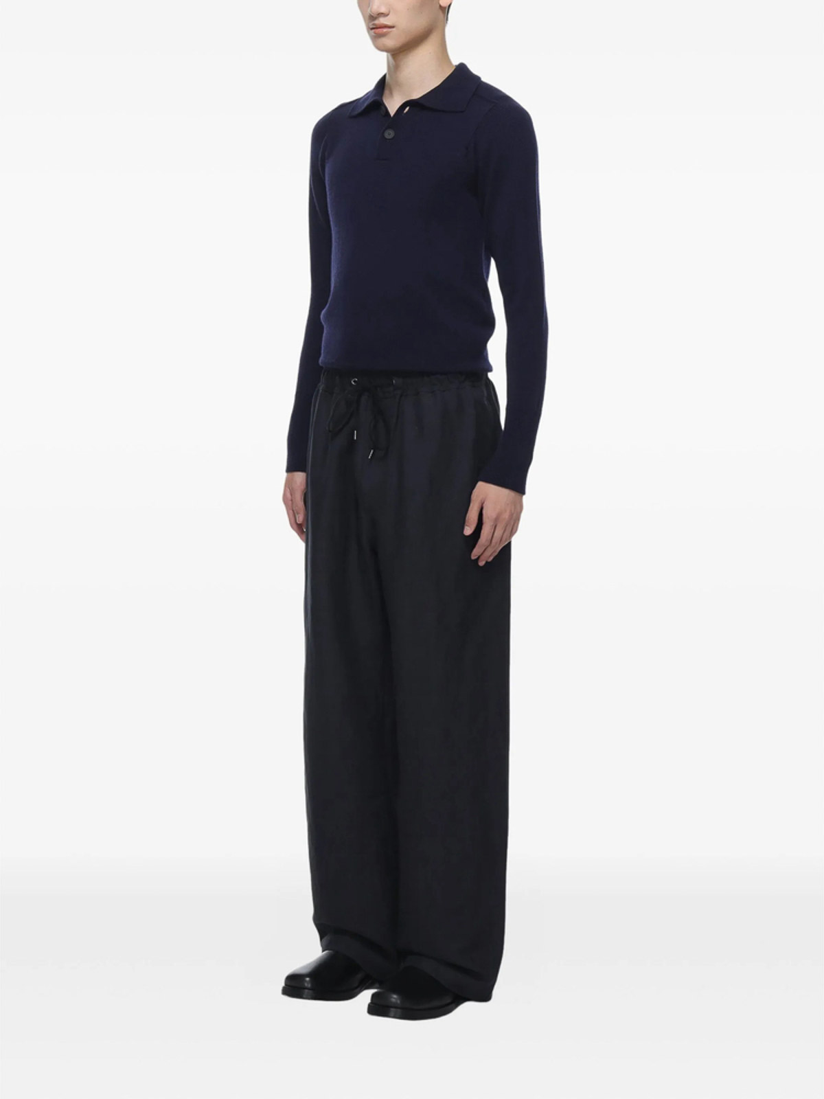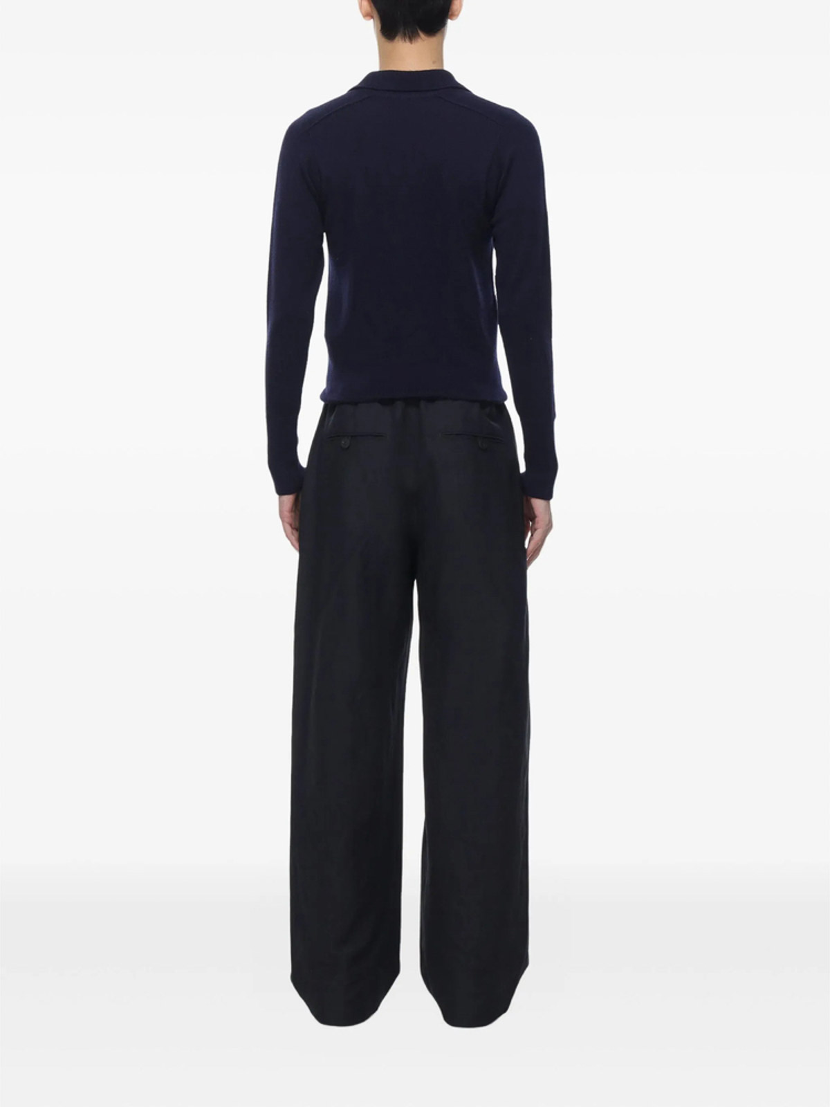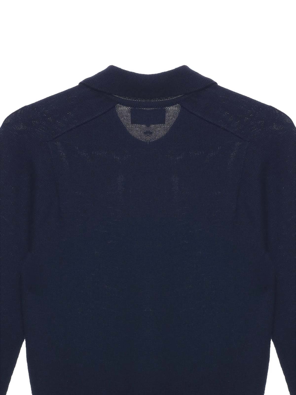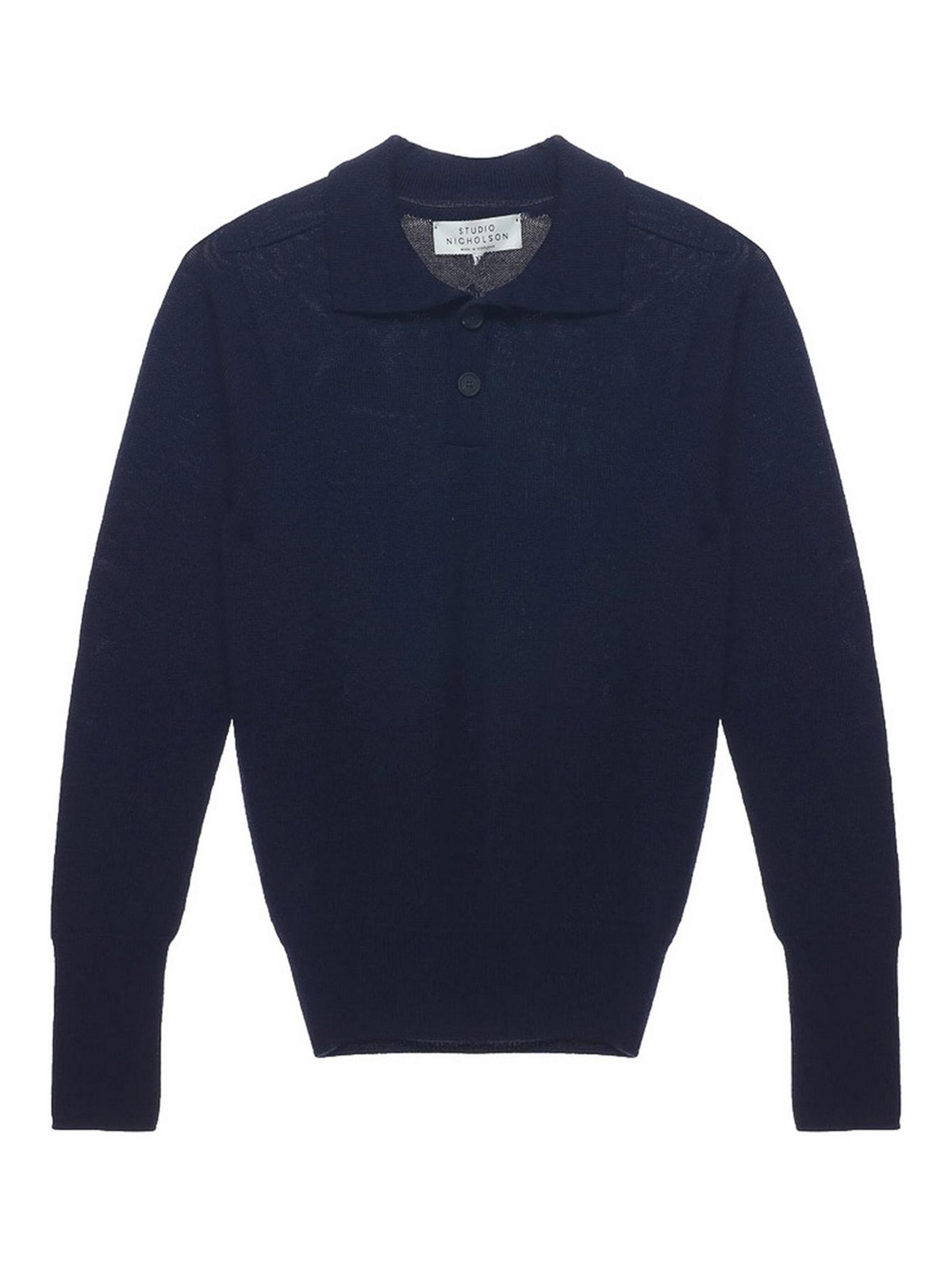 Navy blue material polo collar long sleeves button ribbed cuffs