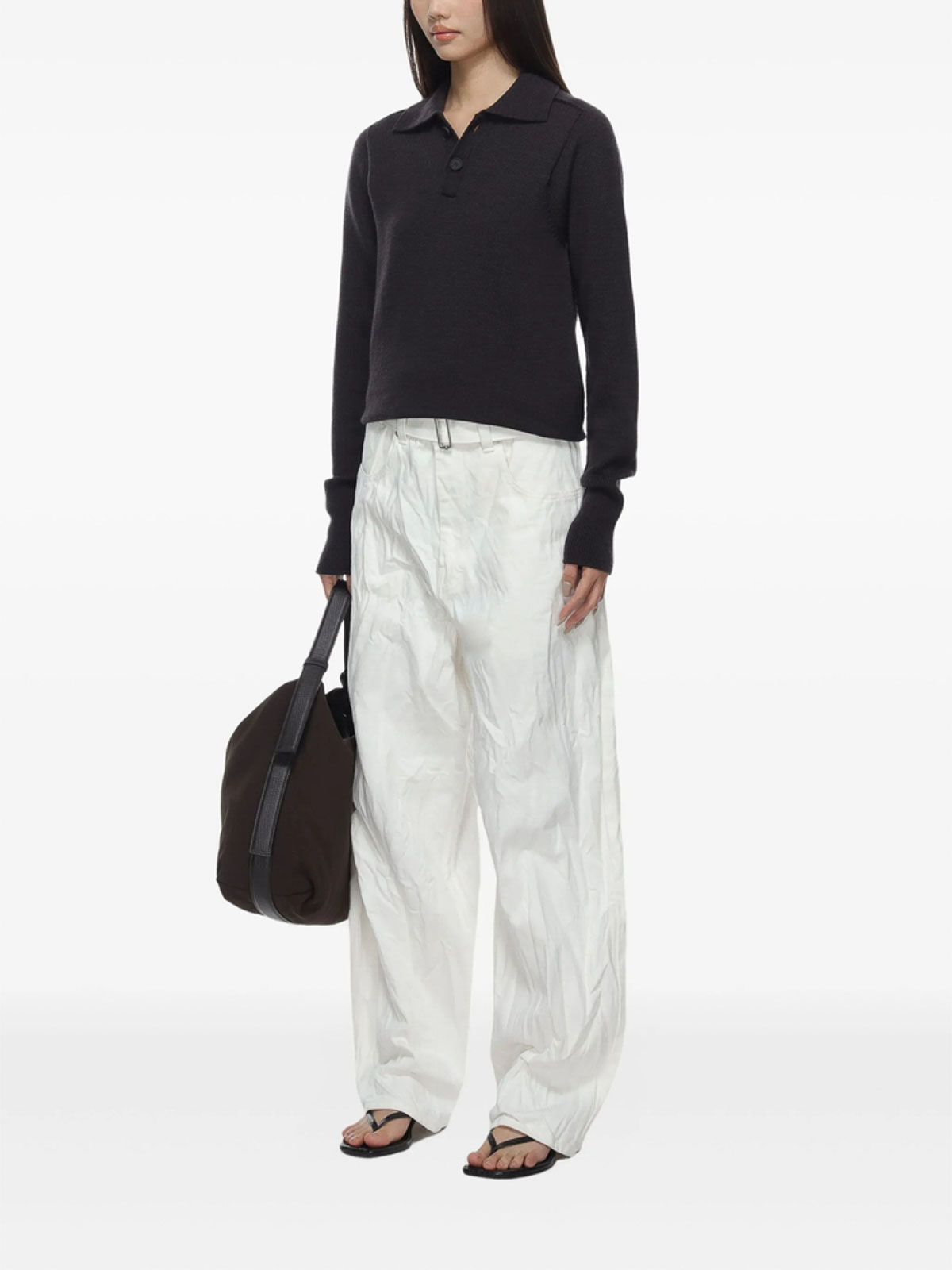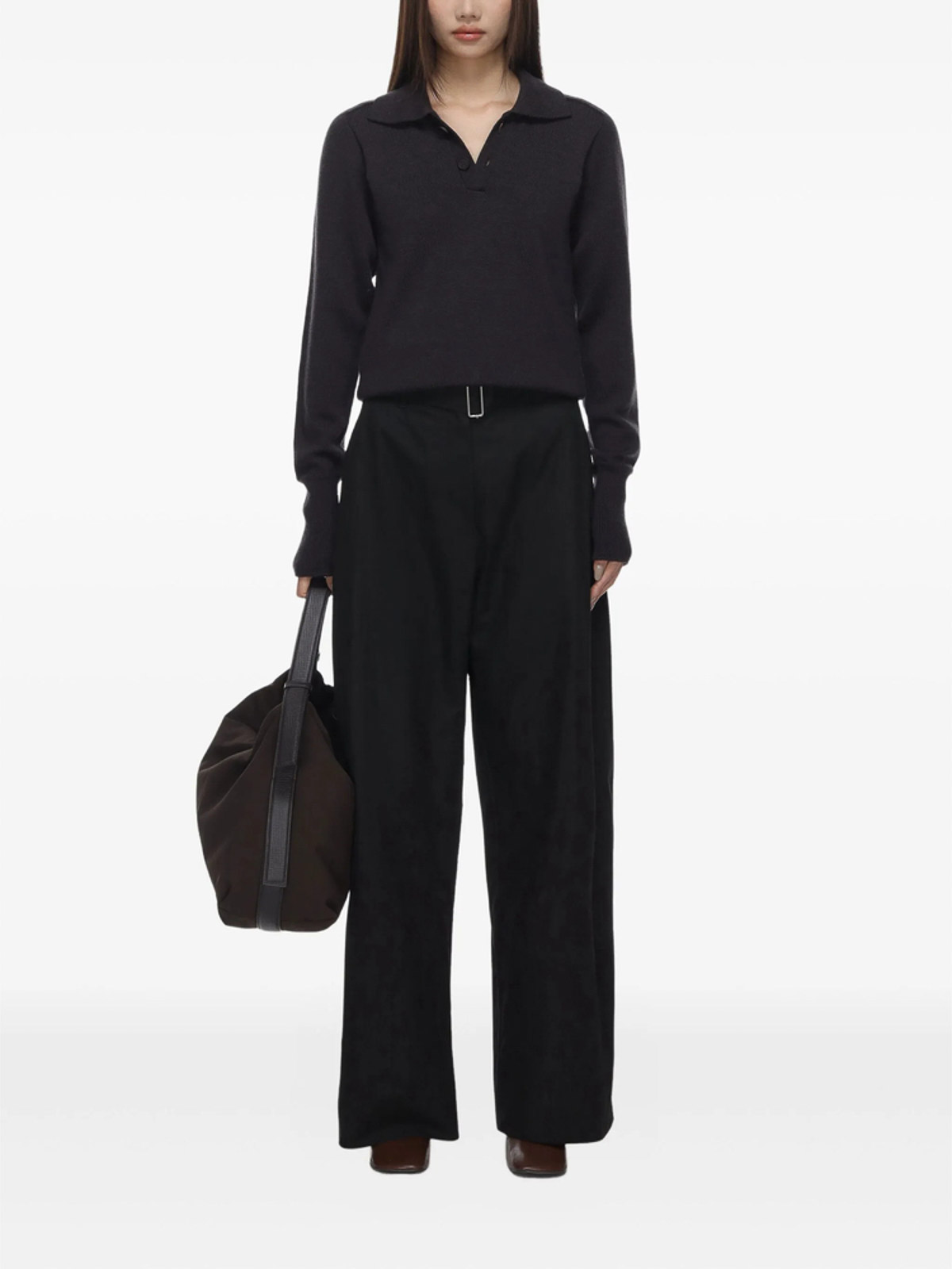 Brown polo neck long sleeves ribbed cuffs button material