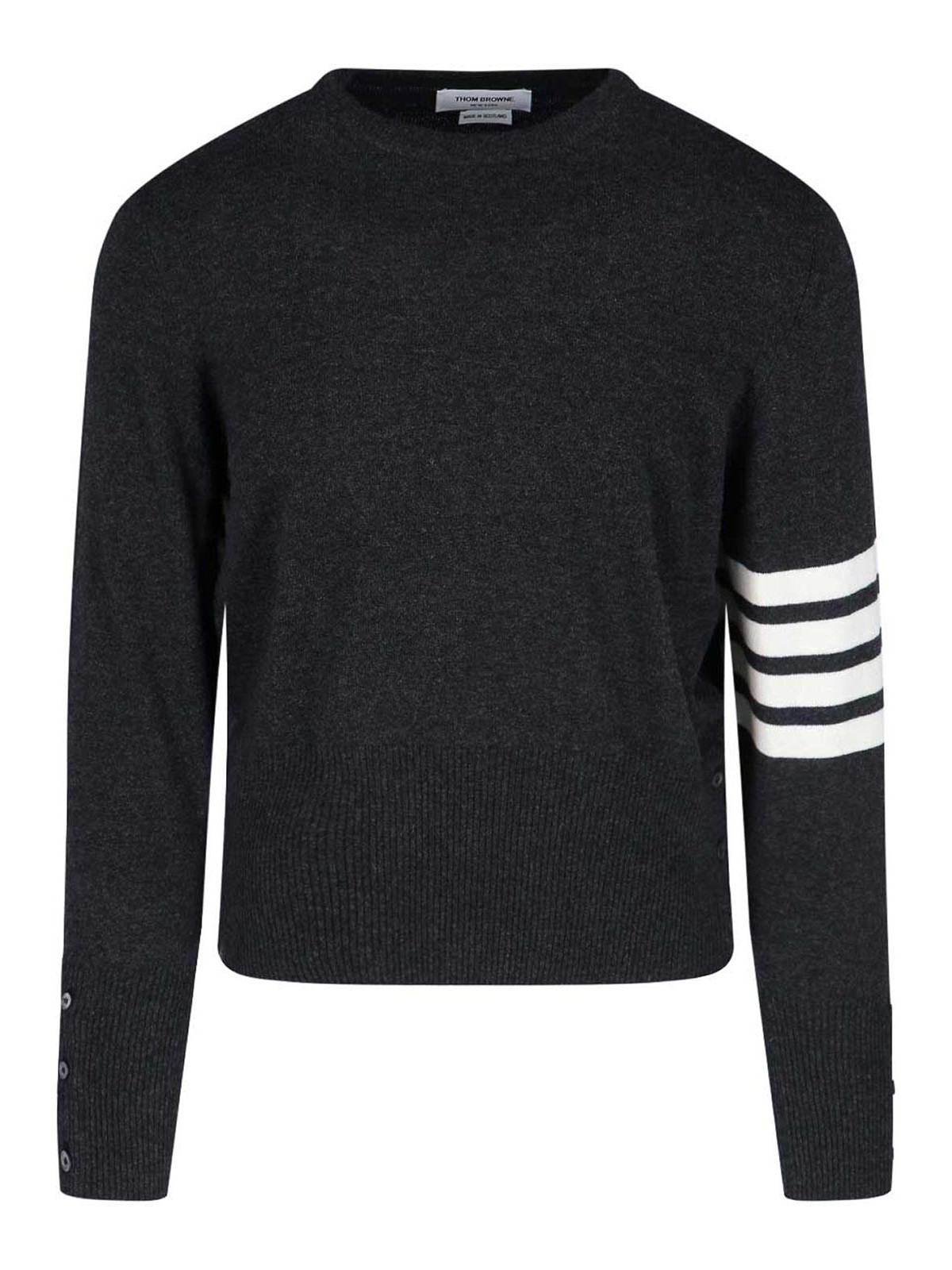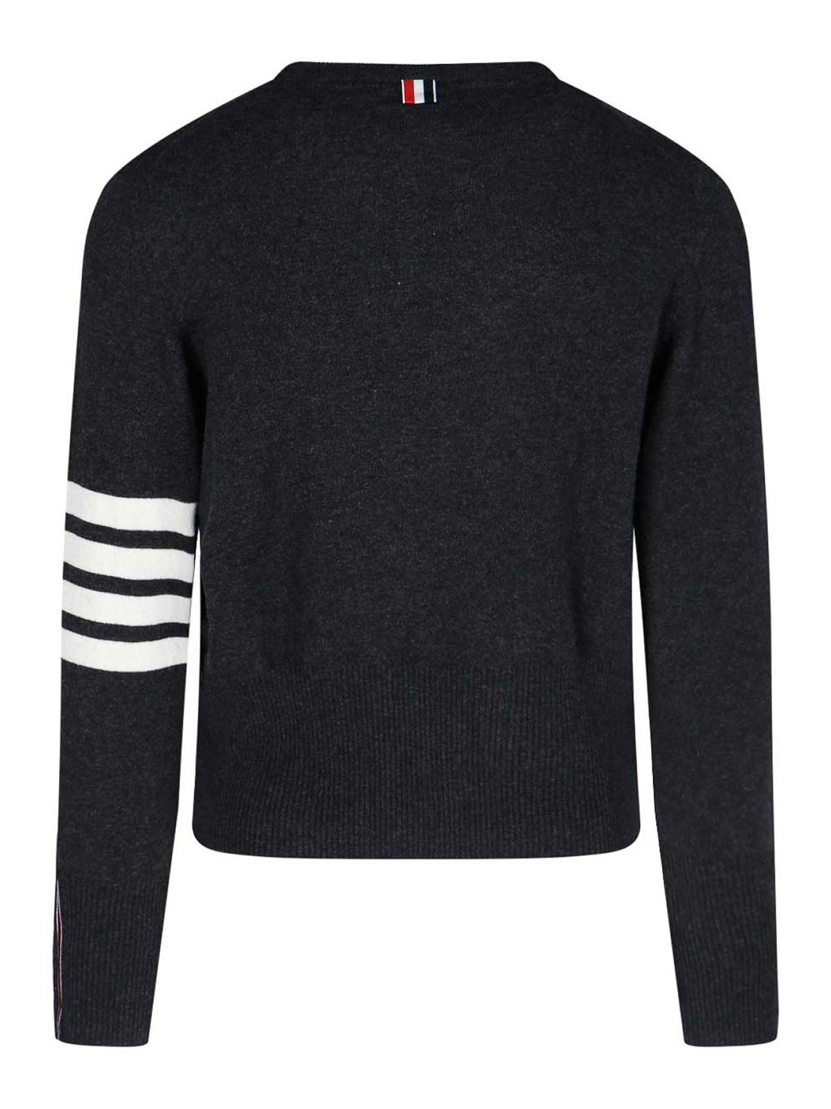 Shirt loopback, bar thom browne black crew iconic bands with lateral label logo in gros grain tricolor retro buttons cuffs finishes with ribbed hears straight