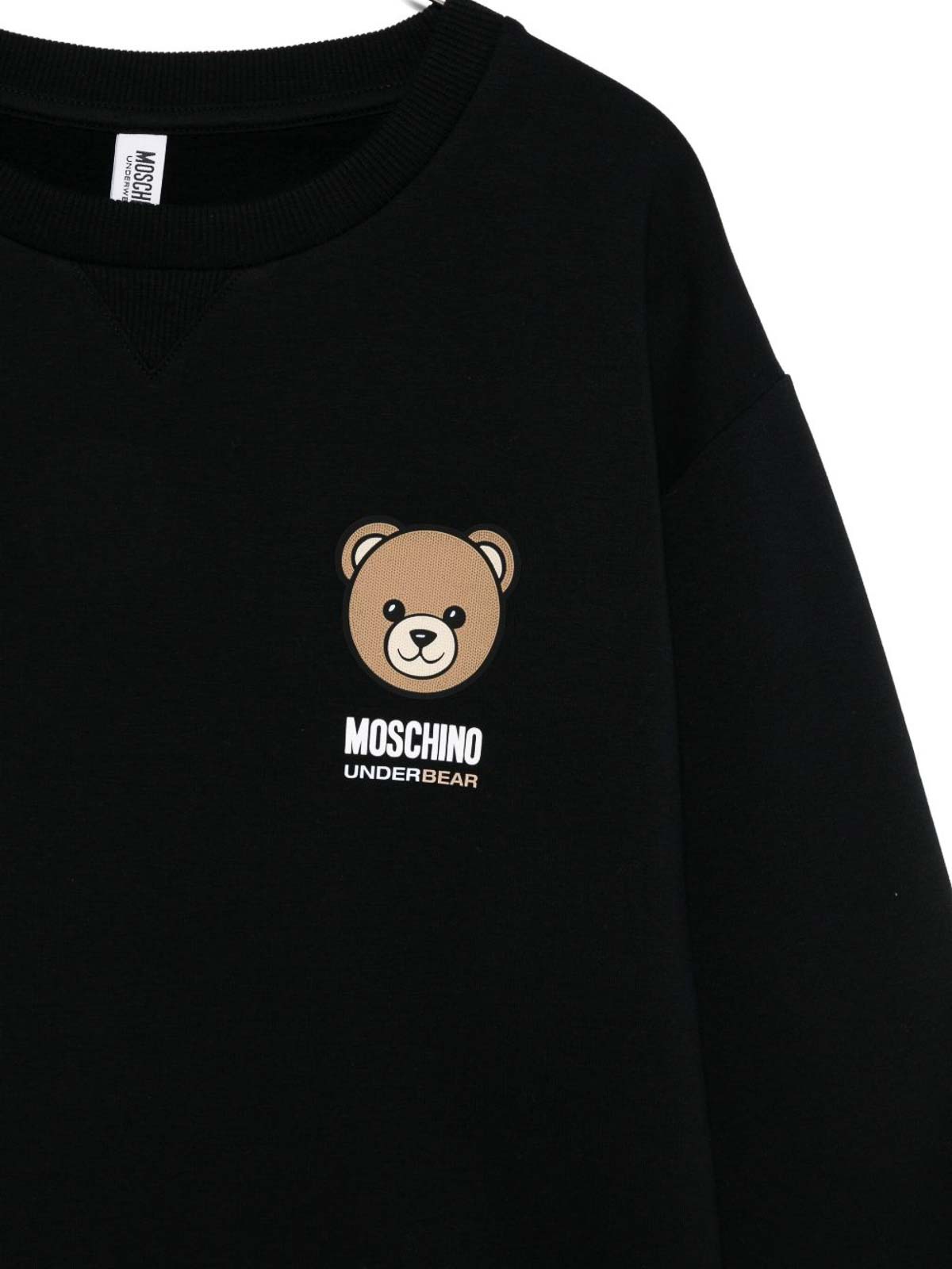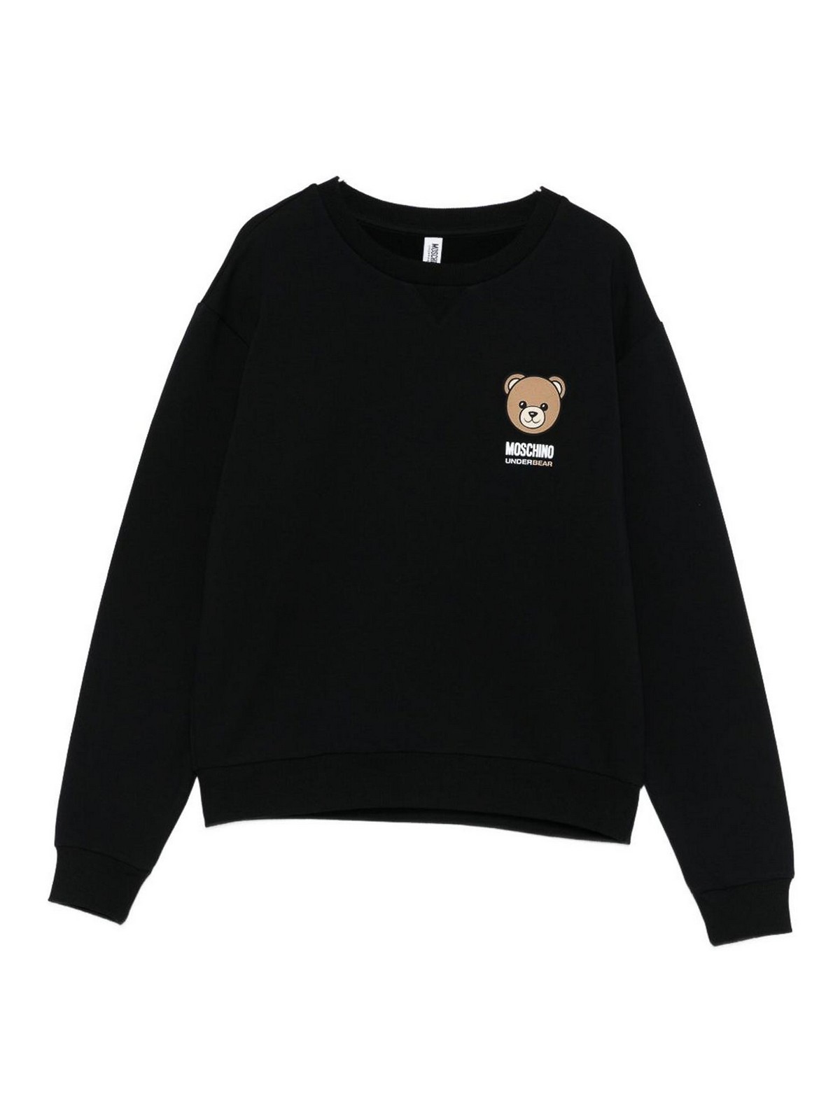 Black crew neck long sleeves ribbed cuffs teddy bear