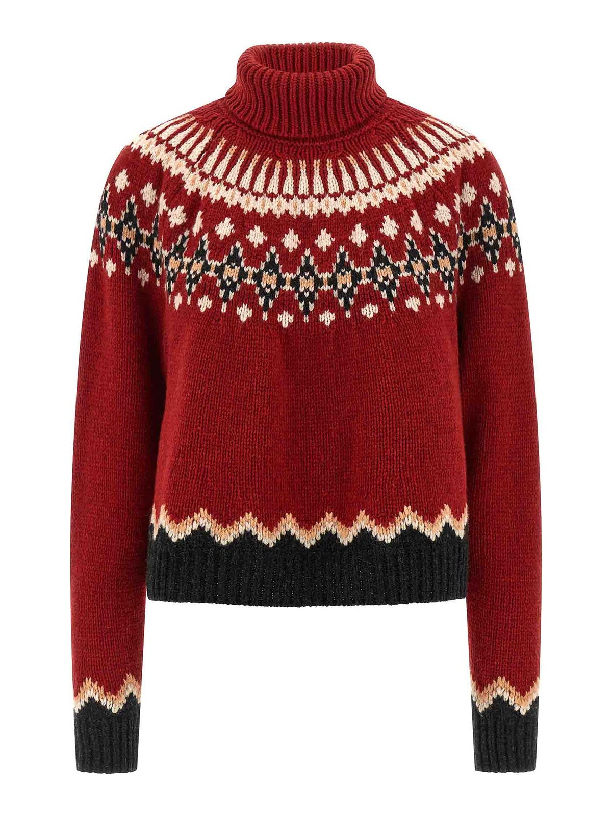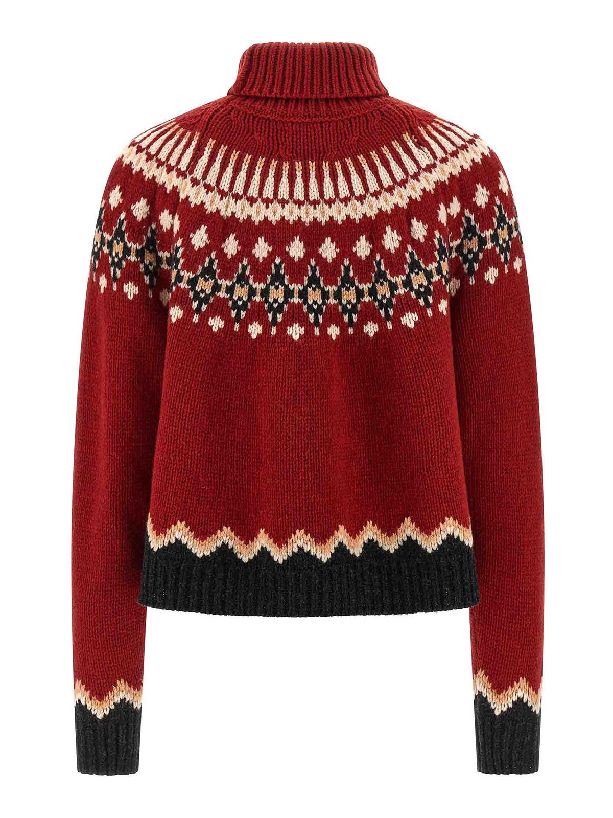 sweet winter' virgin wool jacquard turtleneck sweater with 'fair isle' pattern, high neck, long cuffed sleeves.