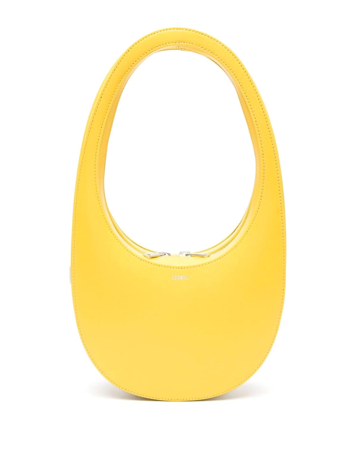 Swipe shoulder bag from coperni featuring canary yellow smooth grain matte finish silver-tone logo lettering mini logo tag single circular top two-way zip and main compartment