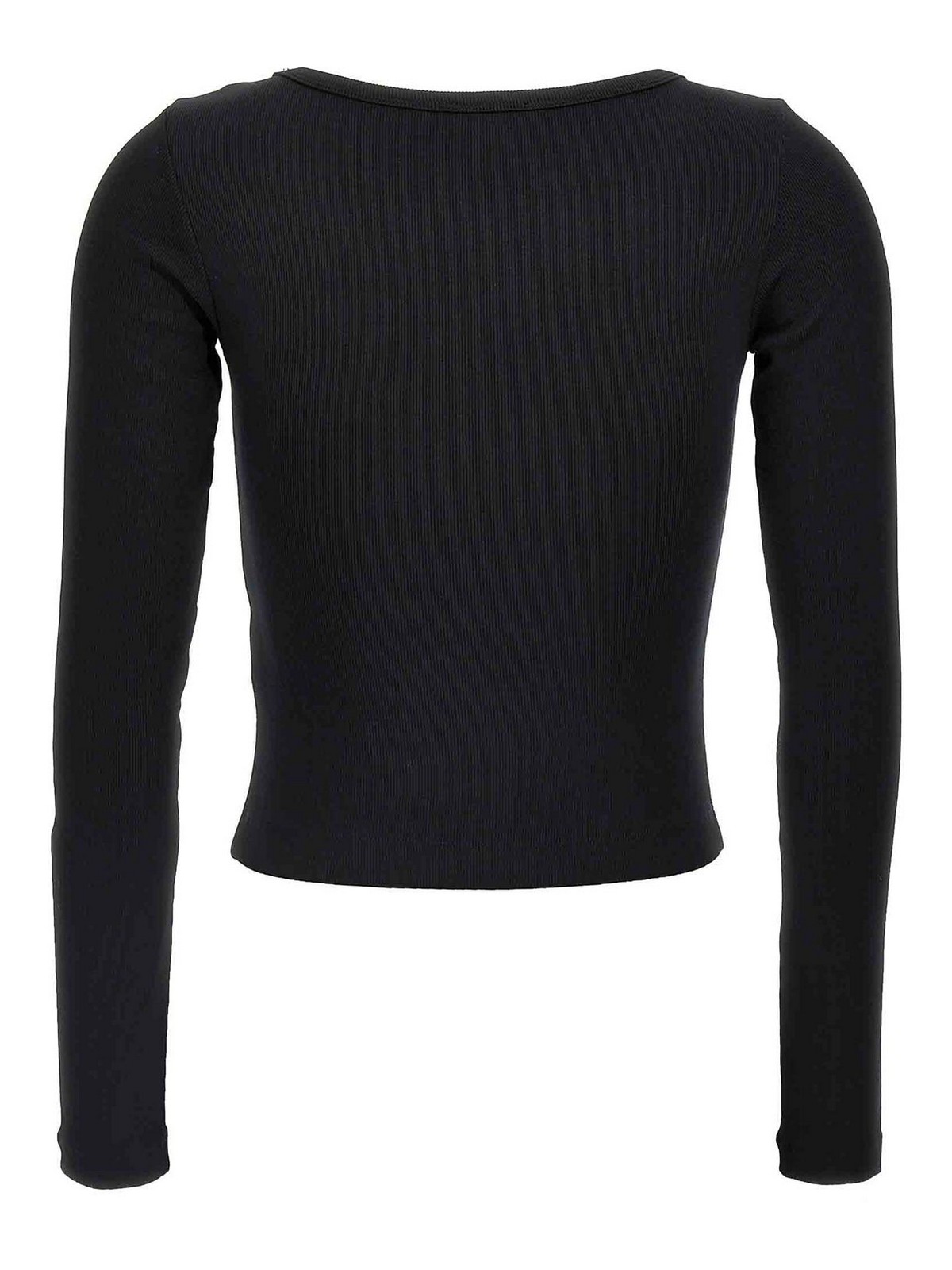 Micro ribbed stretch cotton jersey tank top t-ballet-d, front logo patch, boat neck, and long sleeves.