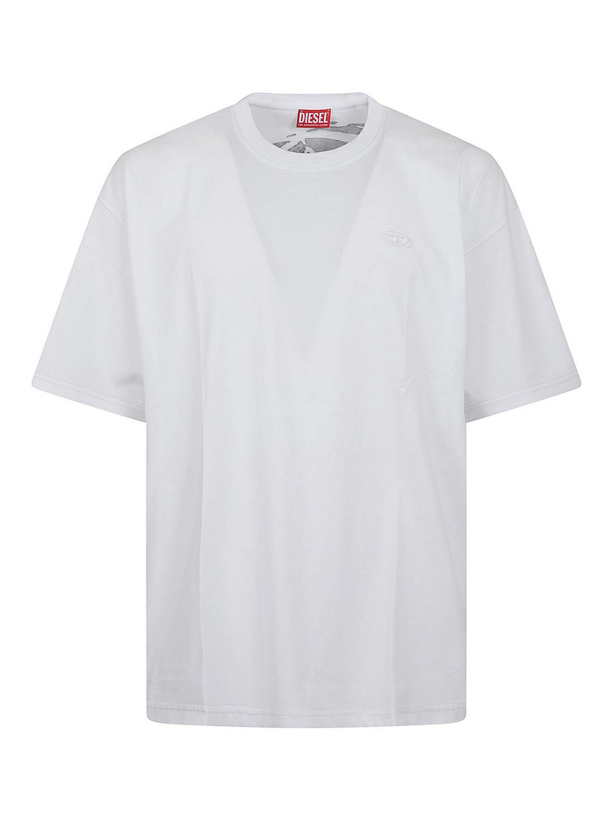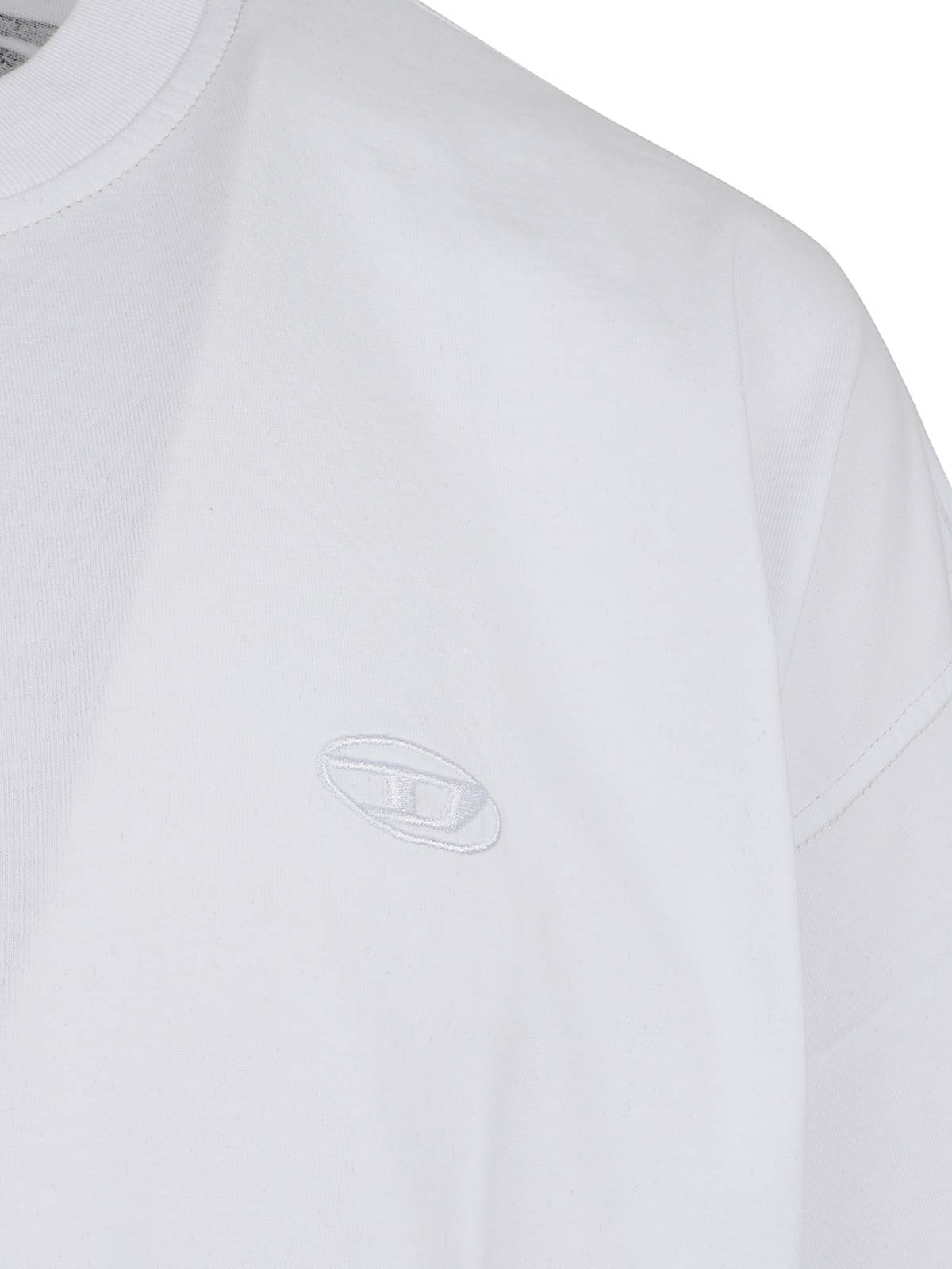 Diesel organic cotton jersey T-shirt, crew neck, short sleeves, relaxed fit, featuring a back decorated with a glitch version of the Oval D logo, enriched with a flocked finish and a small Oval D embroidery also on the chest.