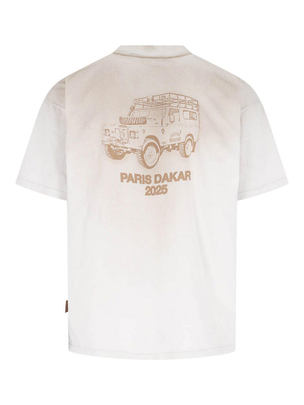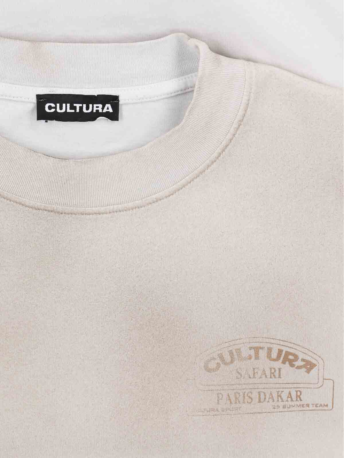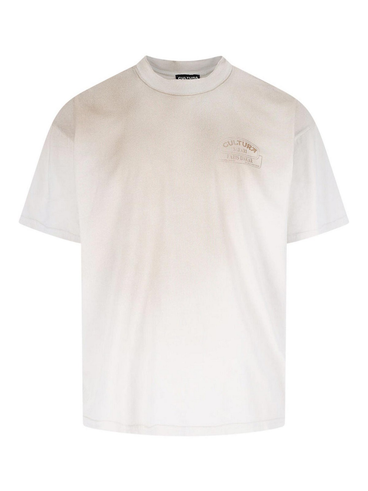 T-shirt logo cultura, in cotone beige, lavaggio usured, girocollo, maniche corte, stampa logo tono su tono petto, maxi stampa logo tono su tono retro, orlo dritto.