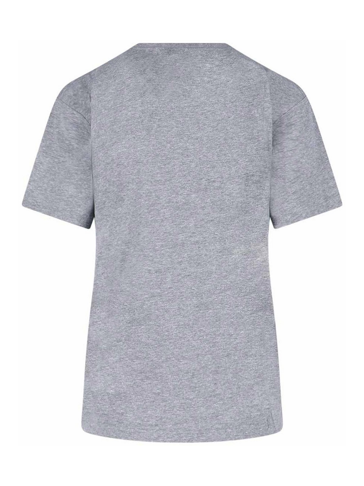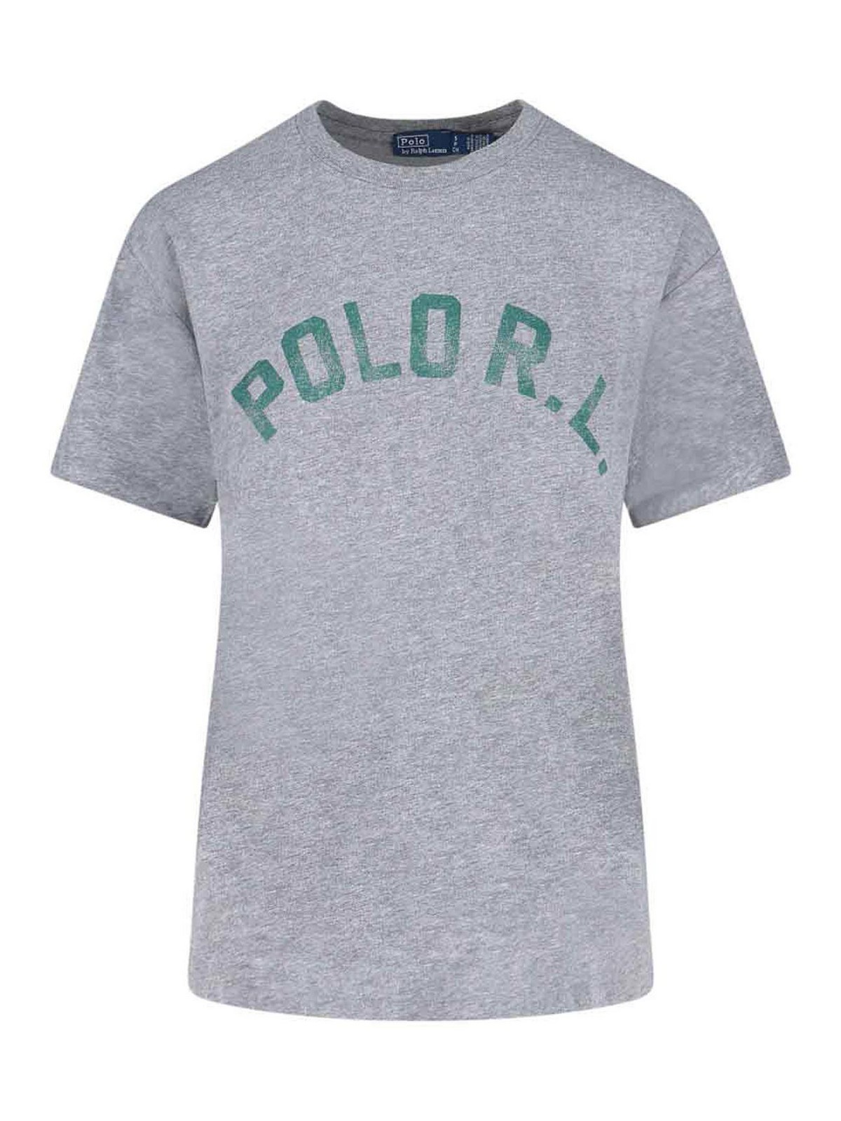 T-shirt logo polo ralph lauren in misto grigio girocollo a costine spalle scese corta maxi logo lettering verde frontale orlo dritto