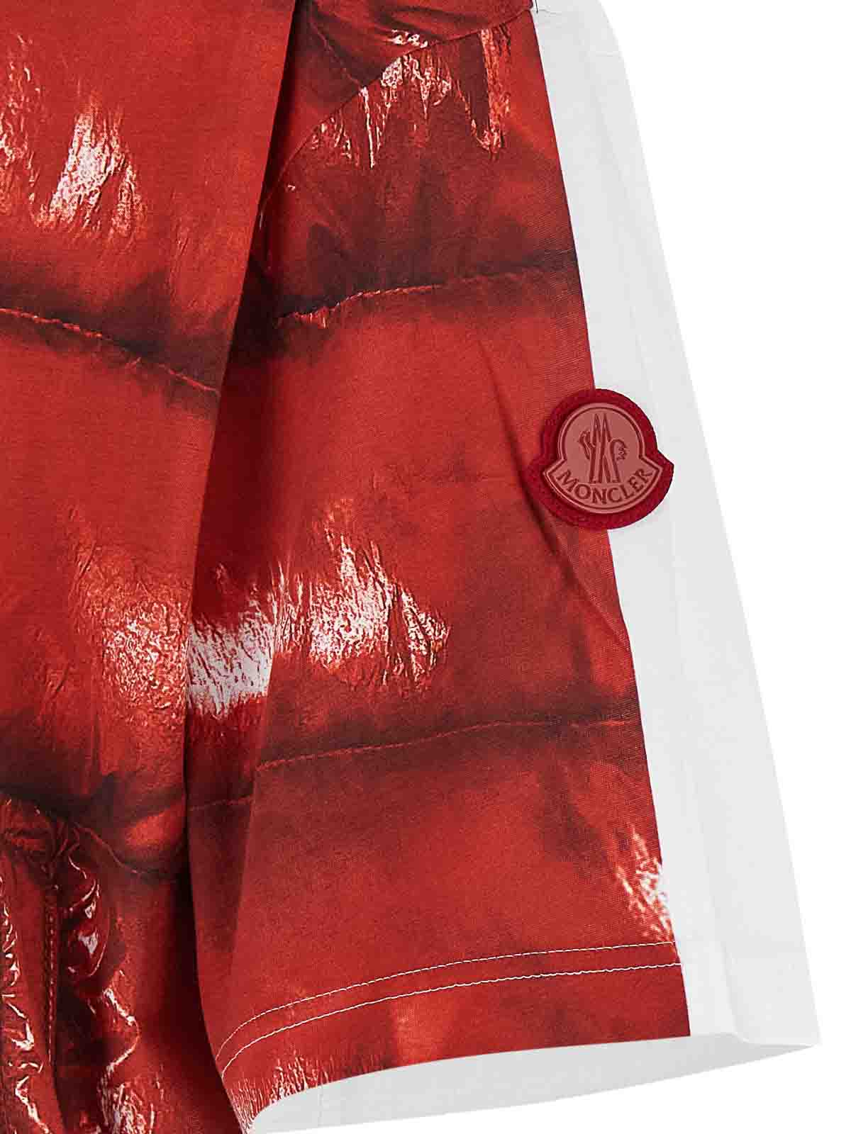 Moncler x asap rocky cotton, crewneck t-shirt with all-over print front panel, side logo patch, and short sleeves.
