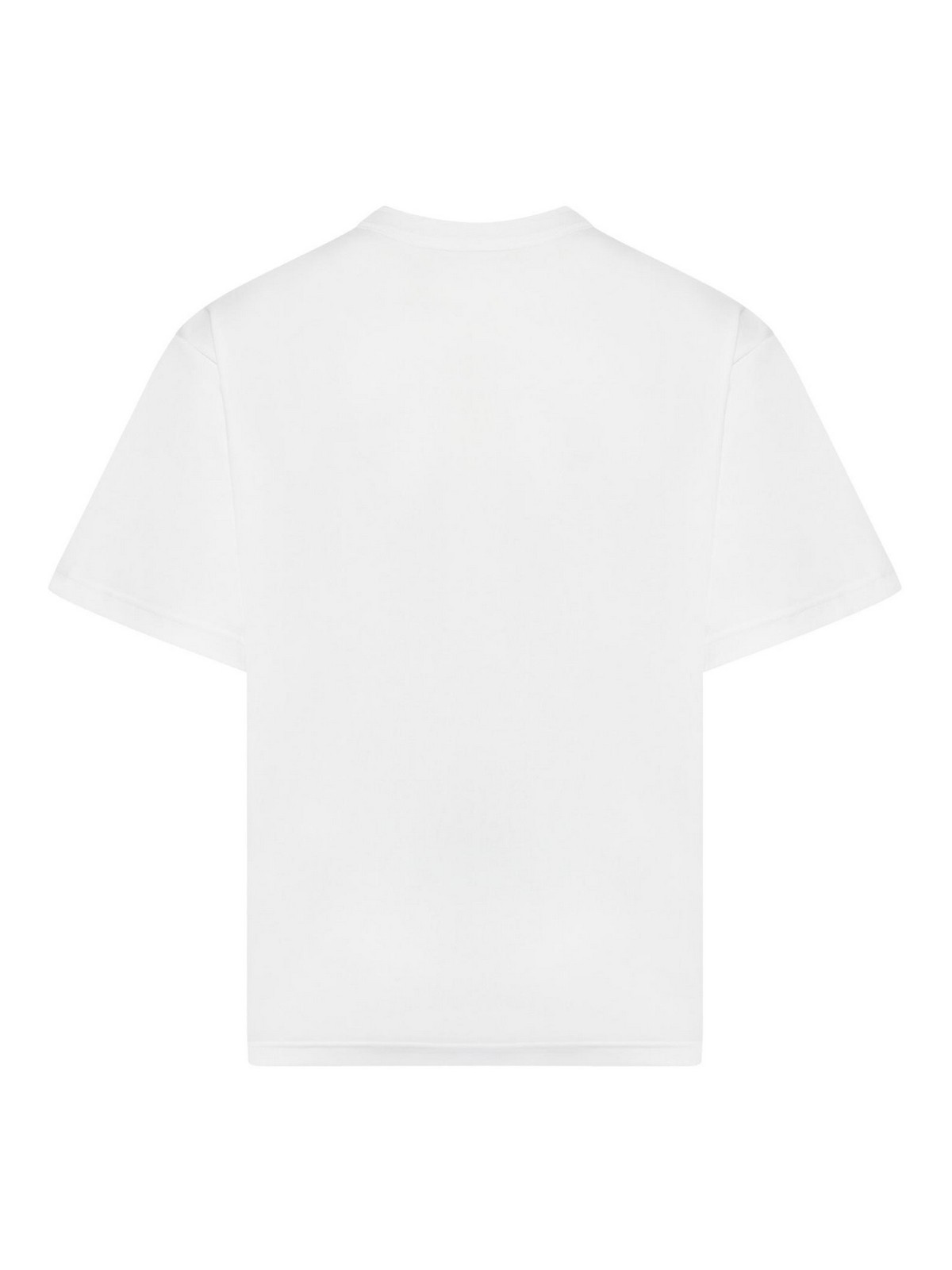 Jersey weave, crew neck, short sleeves, patch chest pocket, embroidered logo, side snap, color white