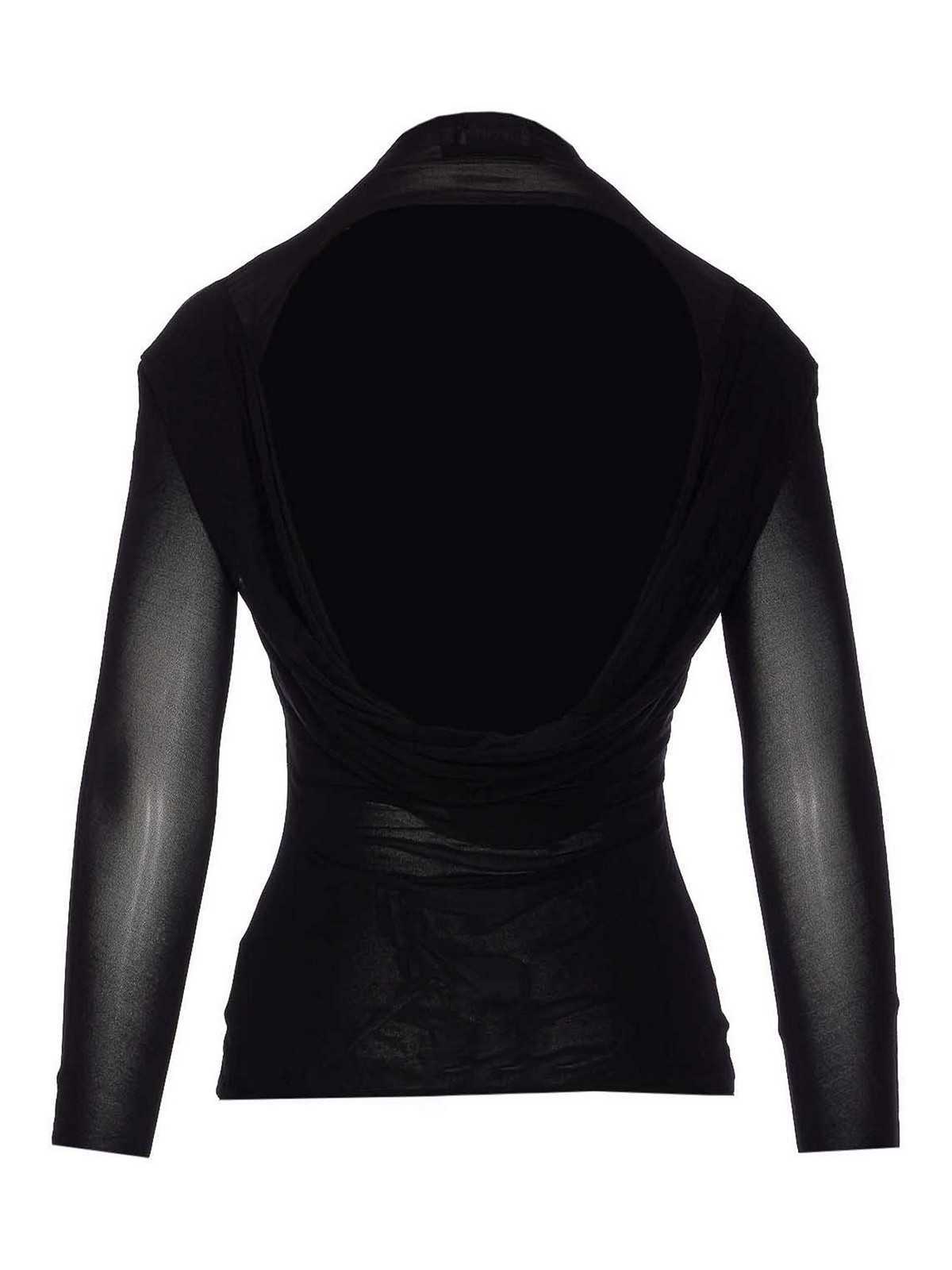 Black top open on the back patch on the long sleeves transparent effect
