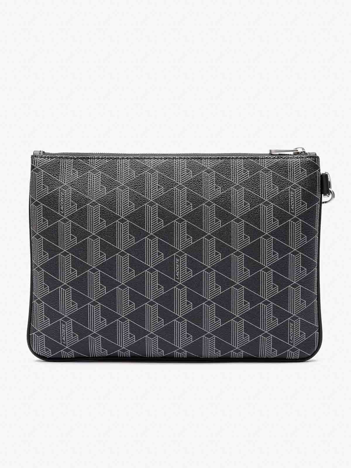 Lacoste's new the blend monogram clutch bag represents a versatile and stylish accessory suitable for enhancing anyone's look, unisex, in sleek black hues