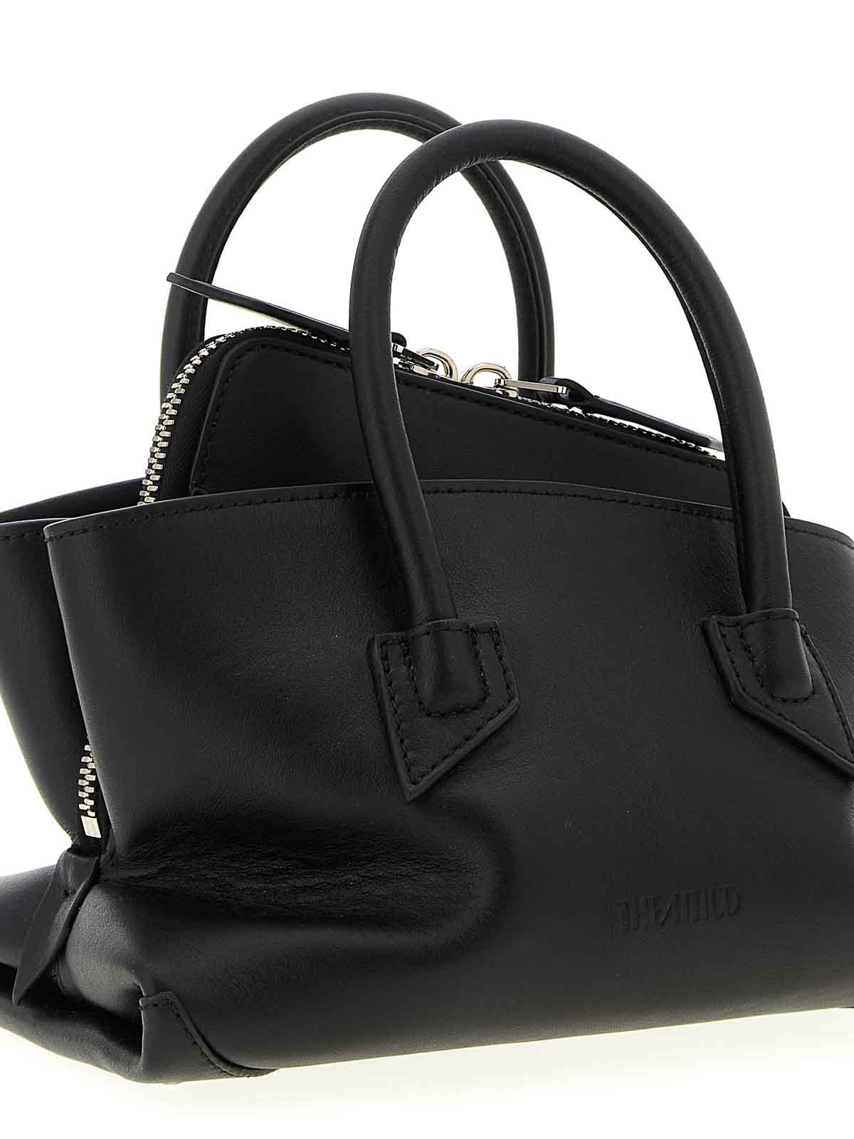 la passeggiata mini' leather handbag with front embossed logo, double fixed handle, top zip closure, side pockets, rigid base with metal feet, removable shoulder strap.