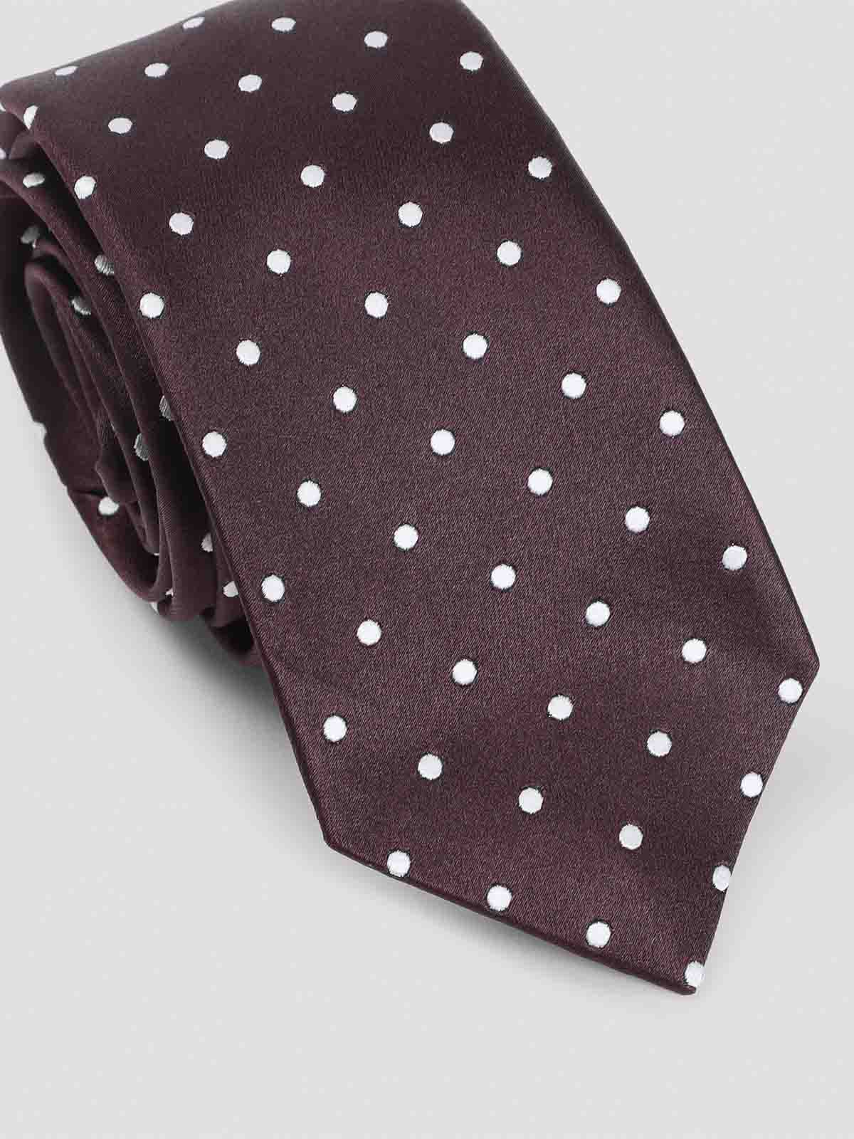 Tom ford dark burgundy red mulberry tie pure mulberry tie contrasting white polka, dot pattern all, over adjustable design