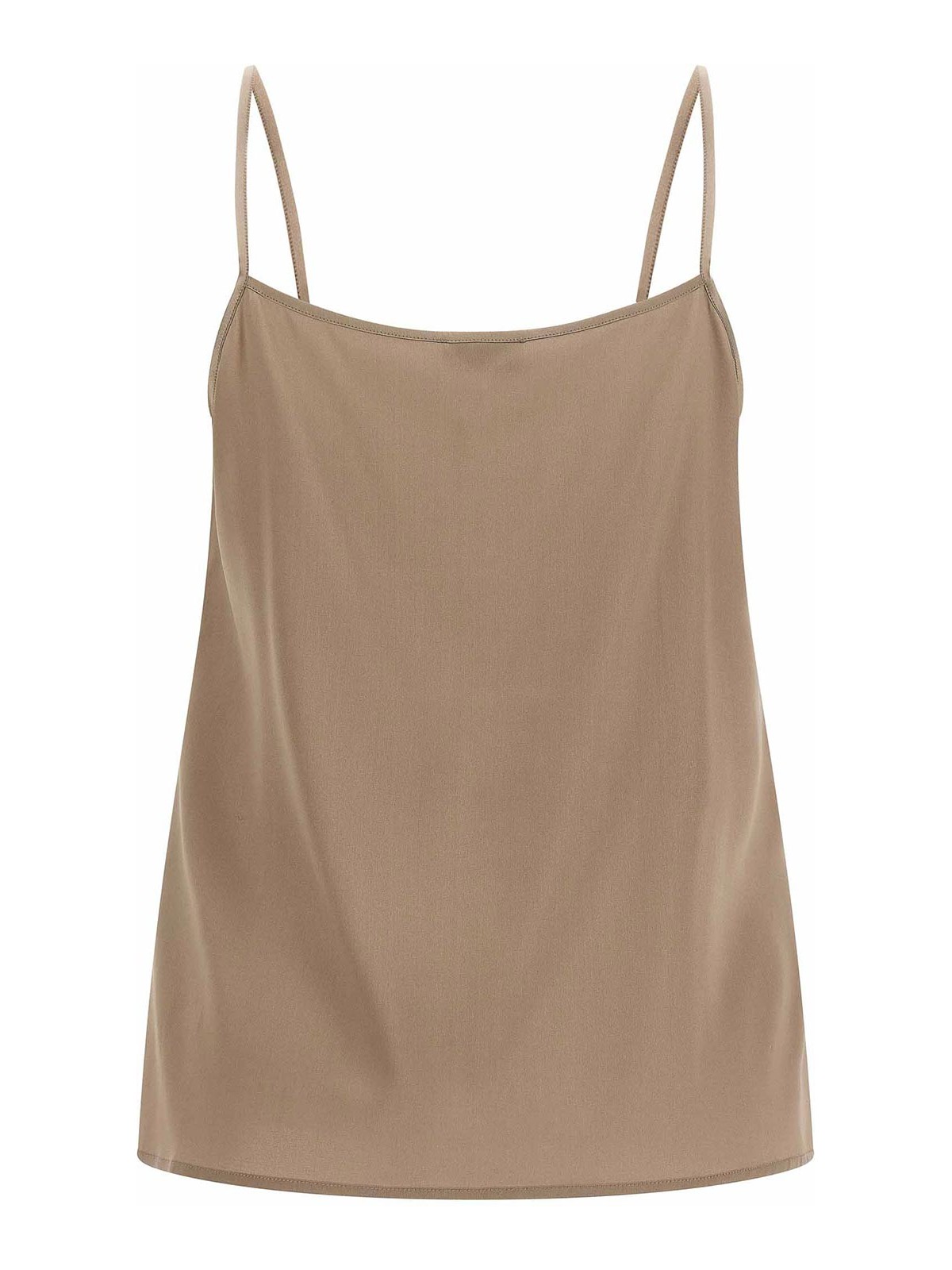 Silk crepe de chine top with square neckline with metal 'punto luce' detail on the front, thin shoulder strap.