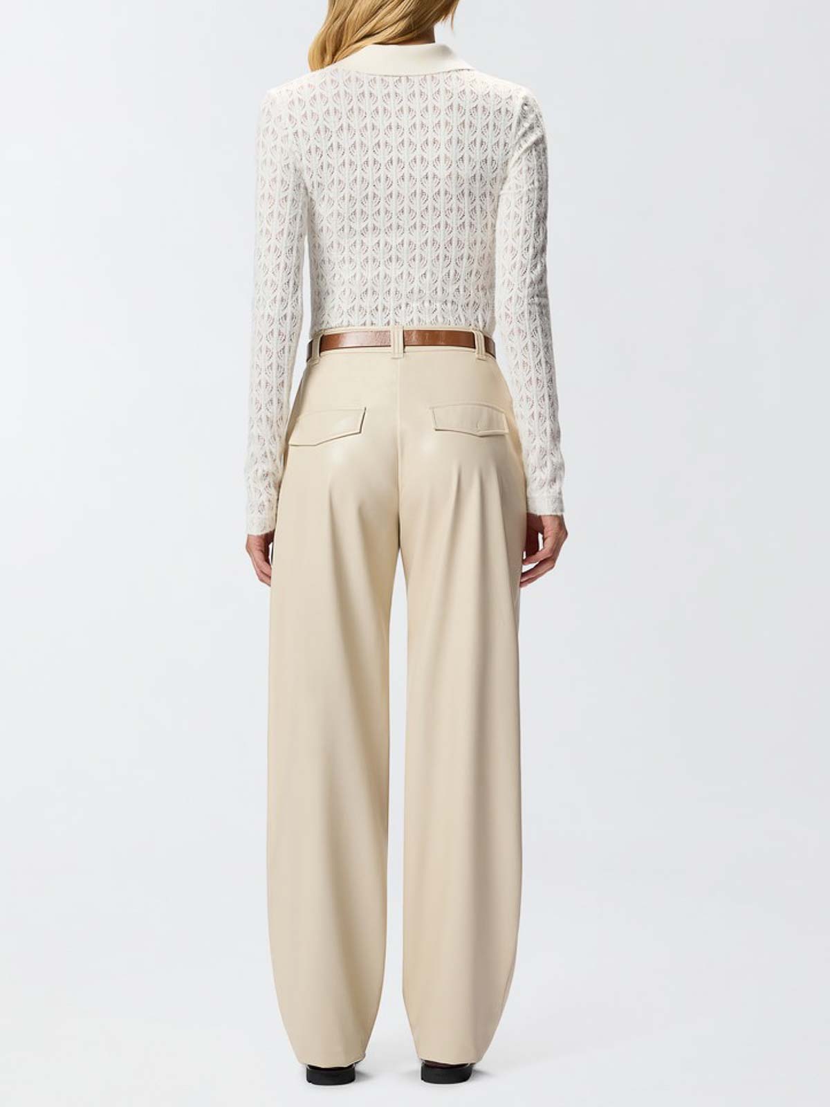 Pinko long-sleeved bodysuit made of warm and cosy lace. the top features a polo-style silhouette with a collar and button fastening, while the bottom is reminiscent of a classic bodysuit. semi-transparent lace alternates with vertical ribbing.
