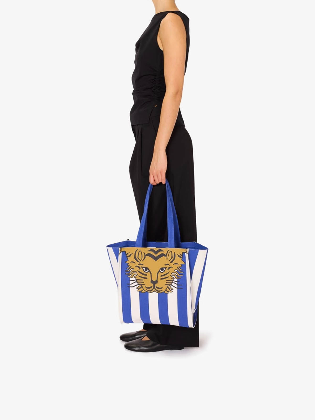 Baldo totebag in multicolour, cotton totebag bag by Inoui with graphic print and fabric handles, graphic print fabric handles without closure single compartment internal zip pocket, colour: multicolour, 100% cotton, h 30 x l 34 x w 16 in h 14.5 x l 21.6 x w 3.1 in.