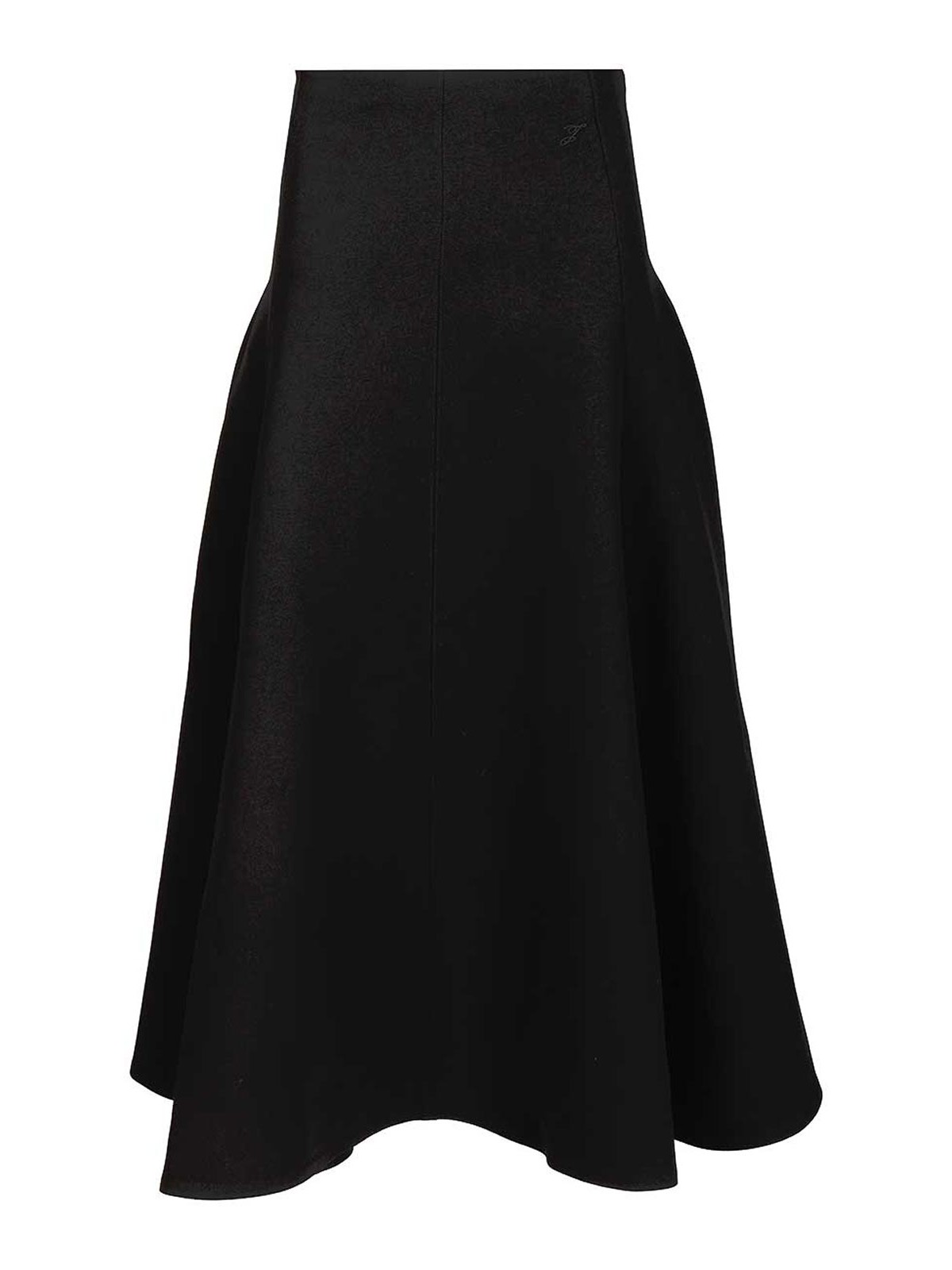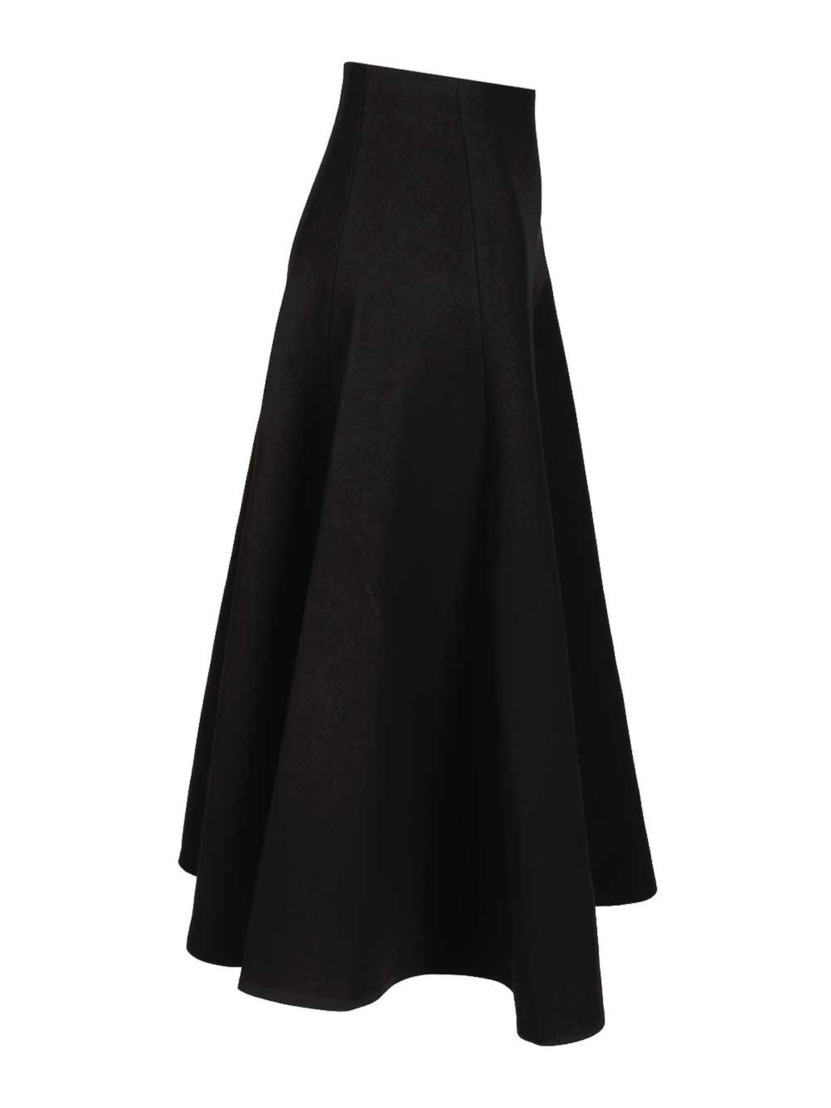 Flared maxi skirt j embroidered on the invisible zip on the back flared hem at the ankle