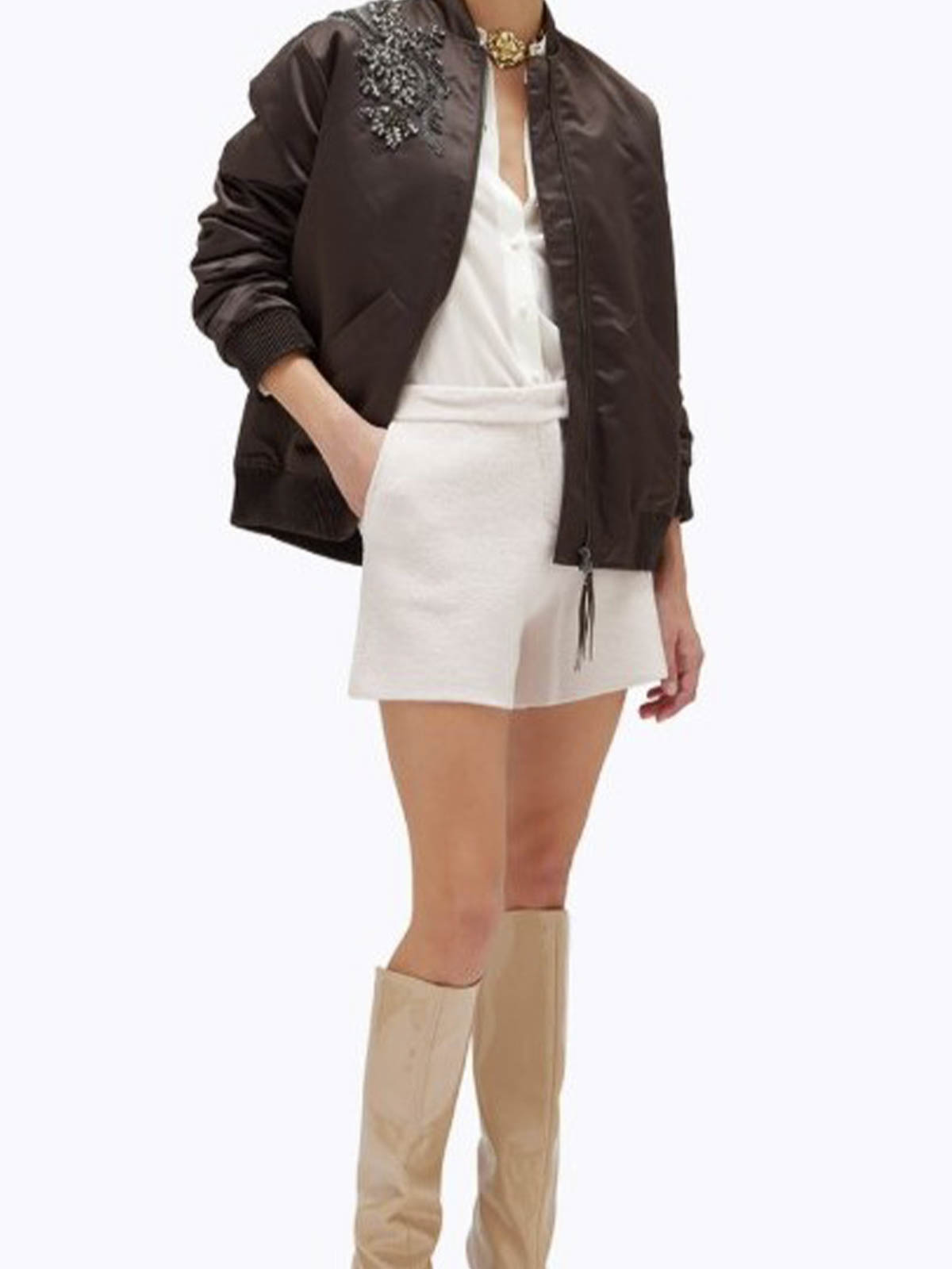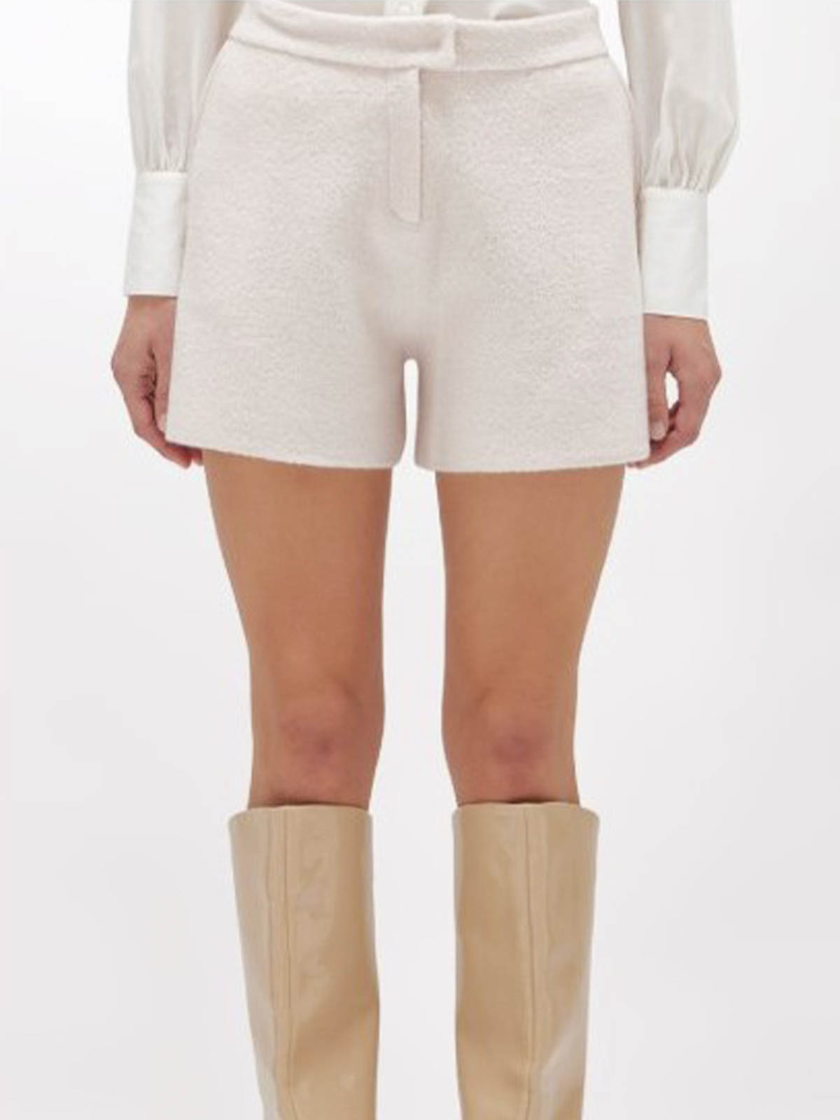 Blugirl shorts made from pure wool jacquard sweatshirt knit fabric with a soft boiled wool effect. they feature a hook-and-eye fastening and zip, french pockets at the hips with tubular trim, and a slim, slightly flared fit.