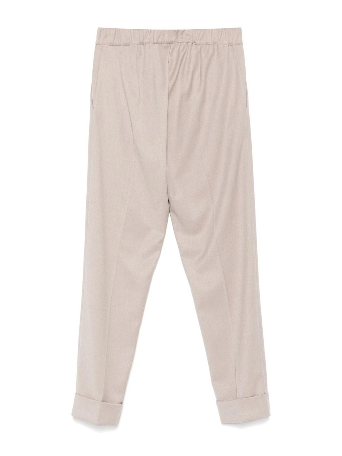 Beige elastic waistband cuffed hems straight leg two pockets button