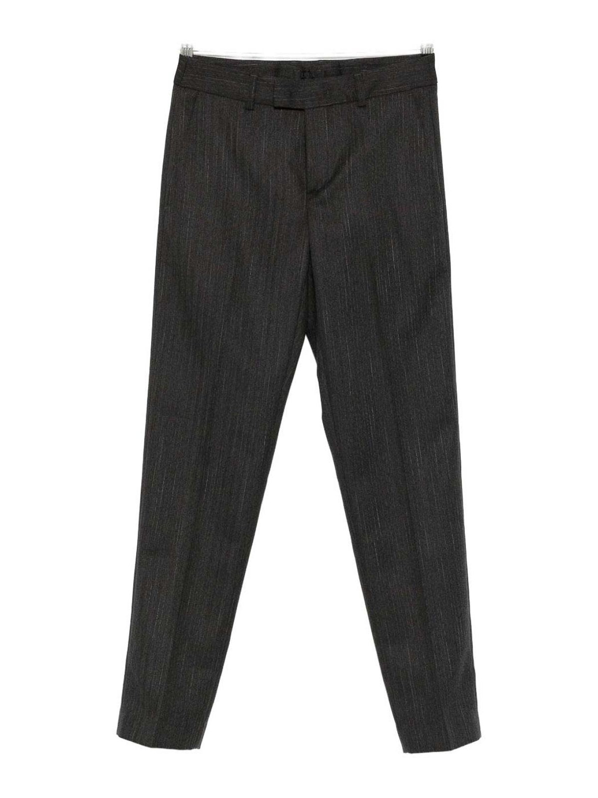 Grey concealed pinstripe pattern mid-rise waist straight leg belt loops