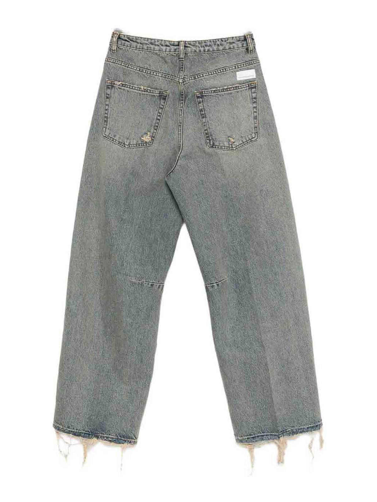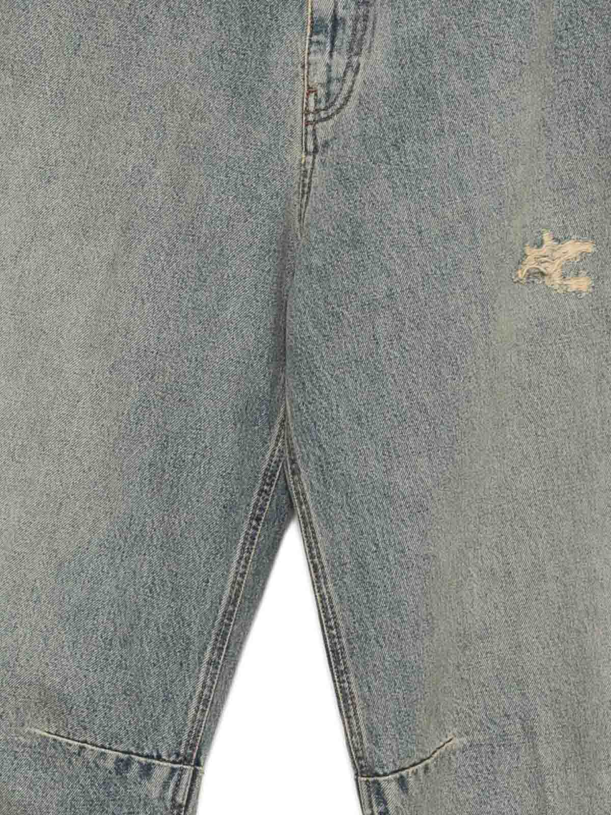 Powder blue distressed effect frayed hem five pockets belt loops button fastening