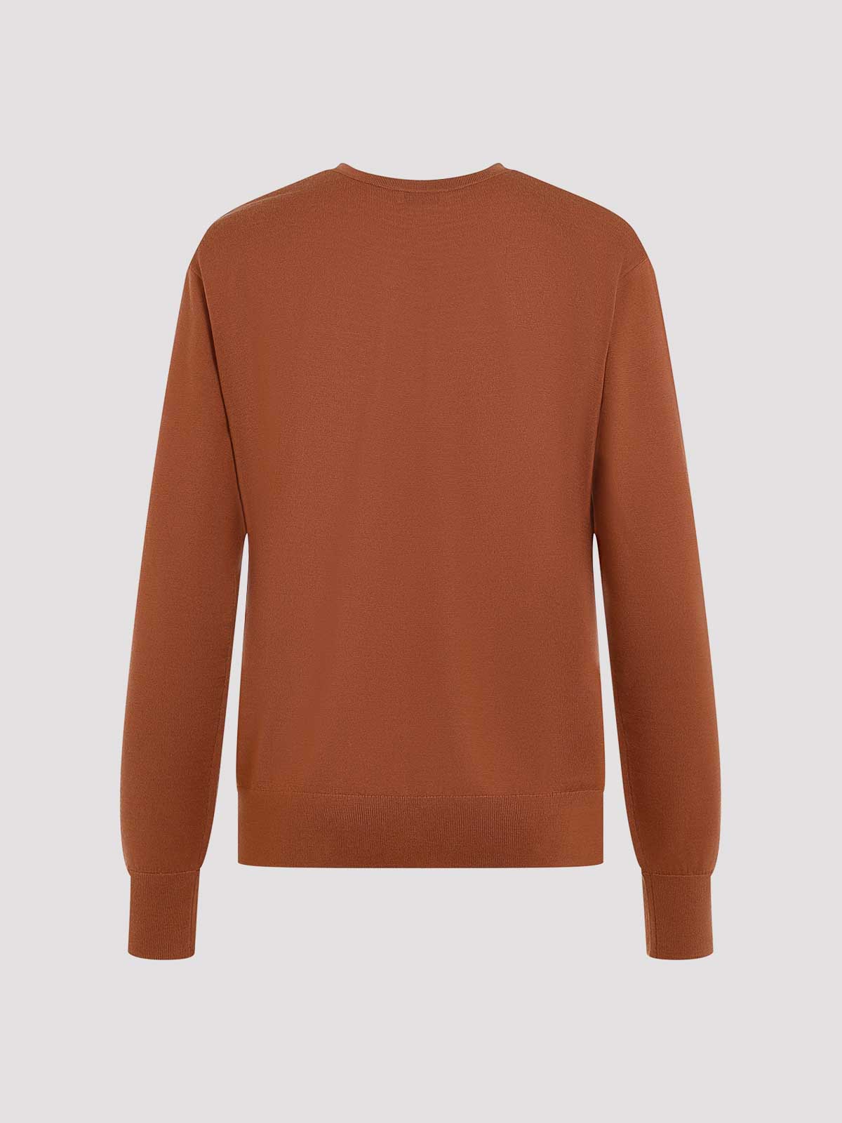 Dries van noten tuomas brown merino wool pullover. fine brown merino wool yarn, v-neck, dropped shoulders, long sleeves, ribbed edges, straight hem.