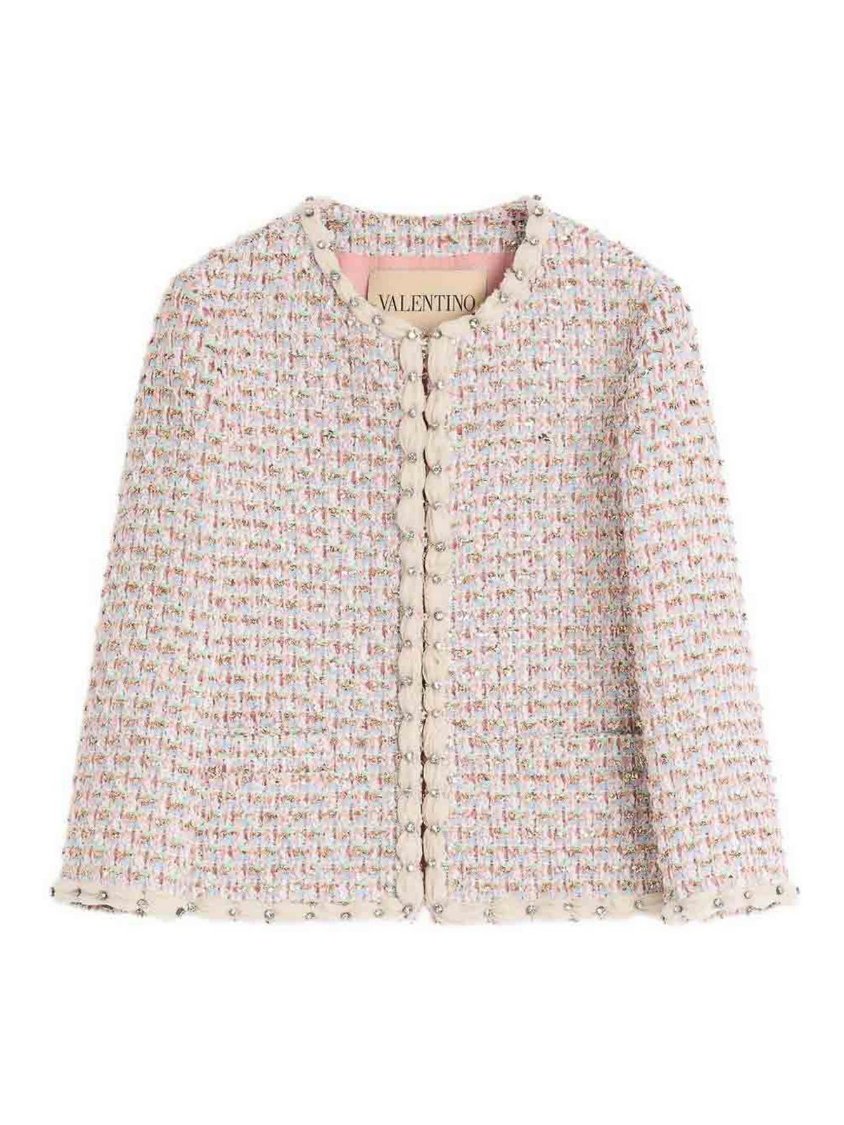 Valentino ready to wear pink contrasting trim rhinestone embellishment faux pocket detail