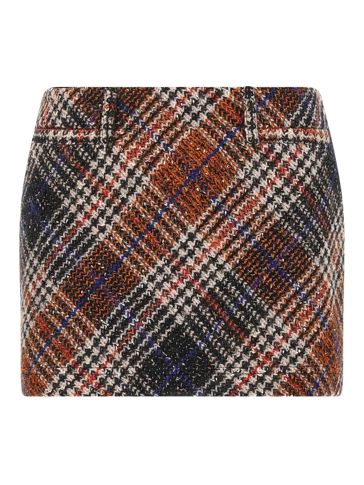 Mini skirt in wool, cotton tweed and alpaca pattern pied-de-poule pattern made with caperdoni frame, side zip closure, lining.