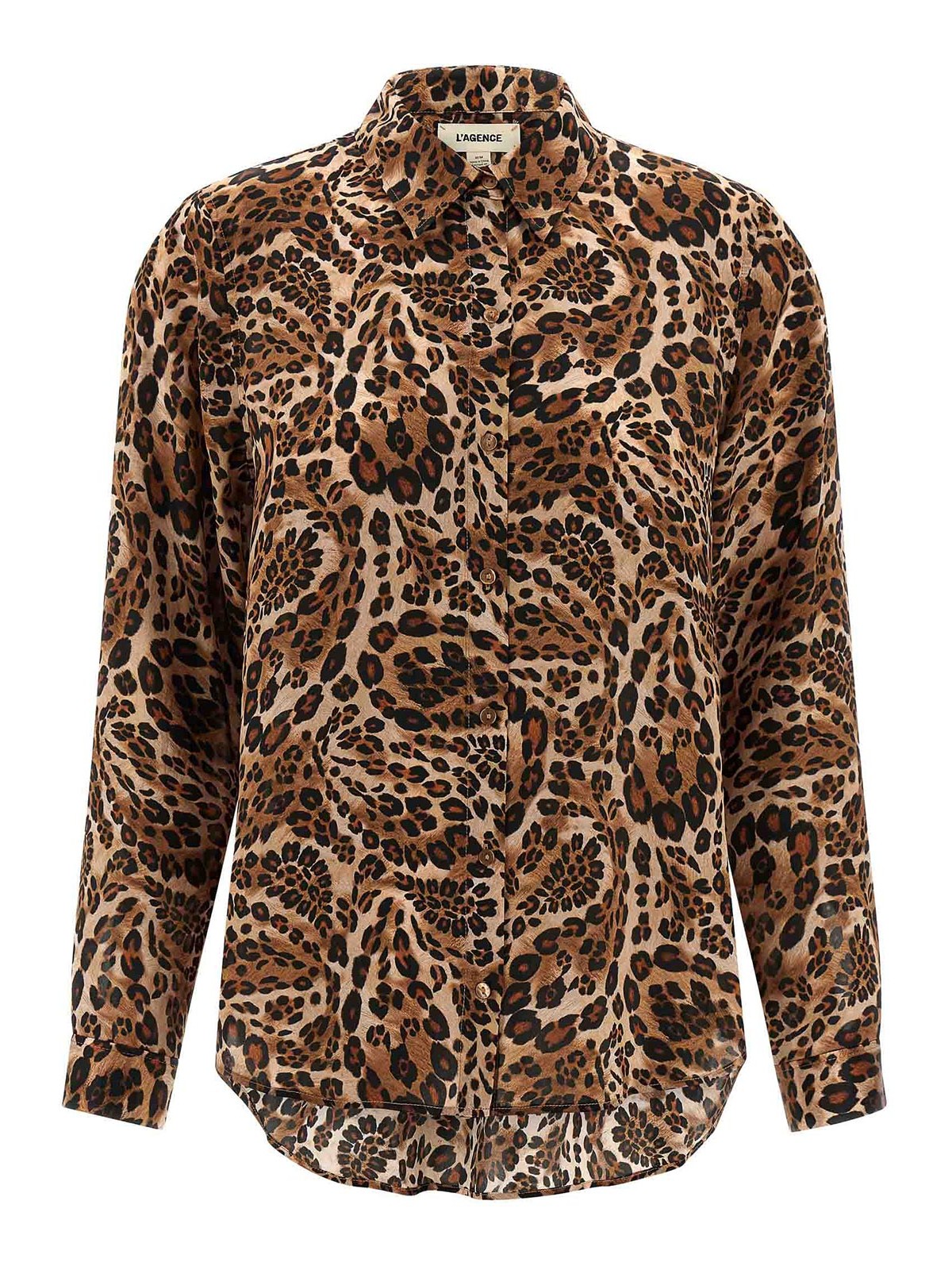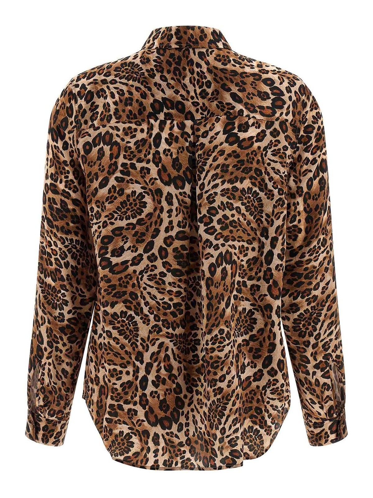 tyler' silk shirt with animal print, front button closure, long cuffed sleeves.