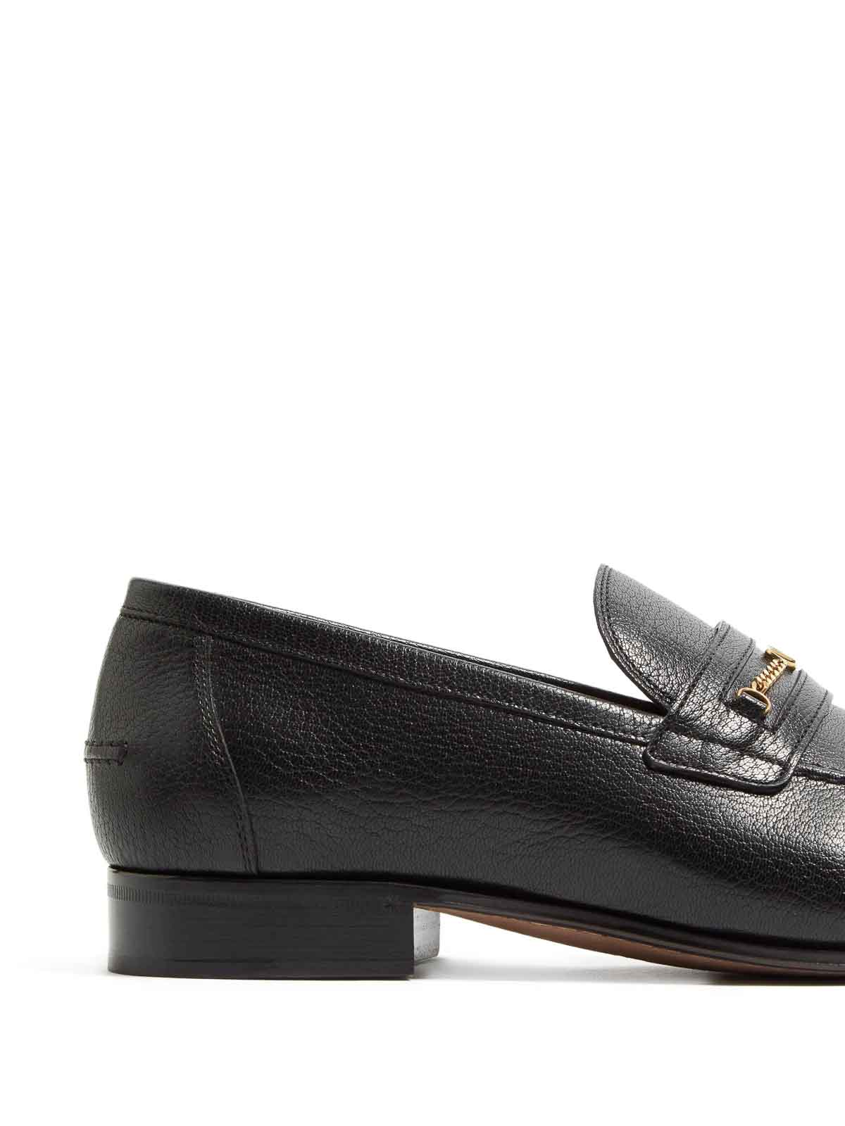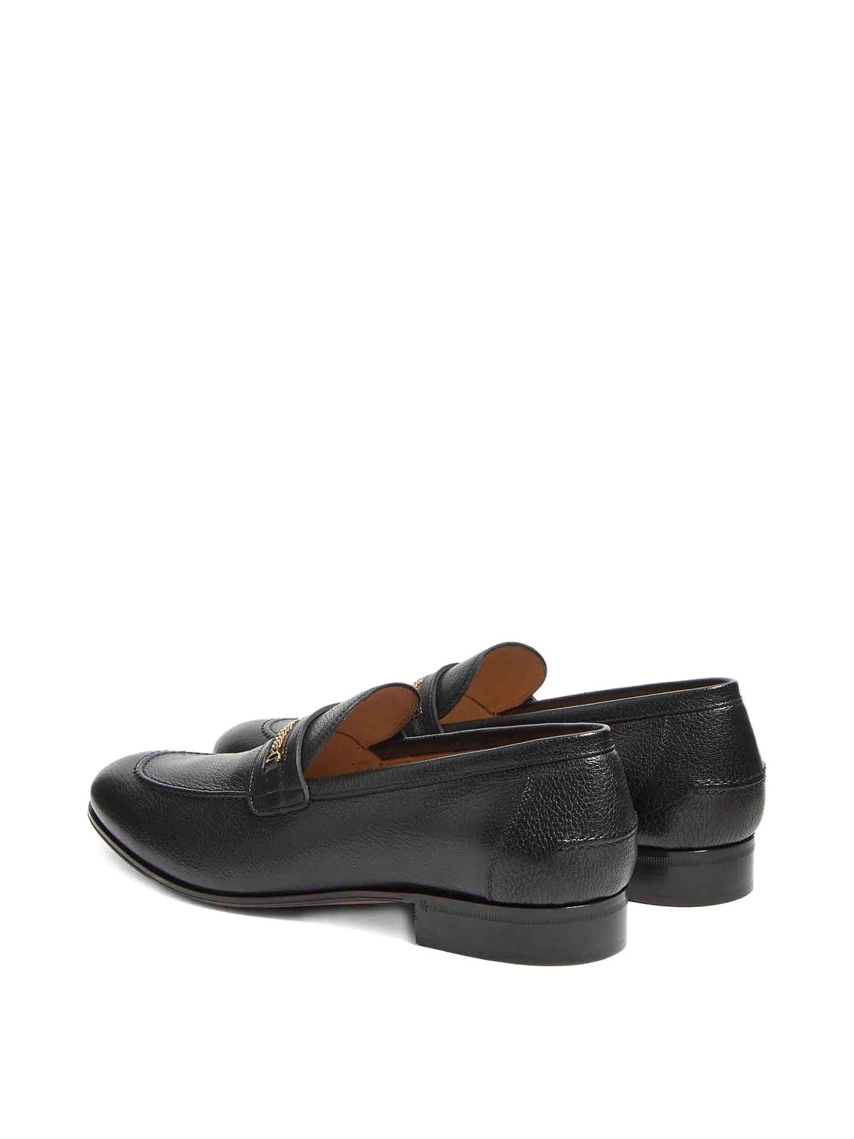 designer color: black, goat leather, chain with vlogo signature accessory, antique brass-effect finish, slip-on style, round toe, branded insole, flat sole.