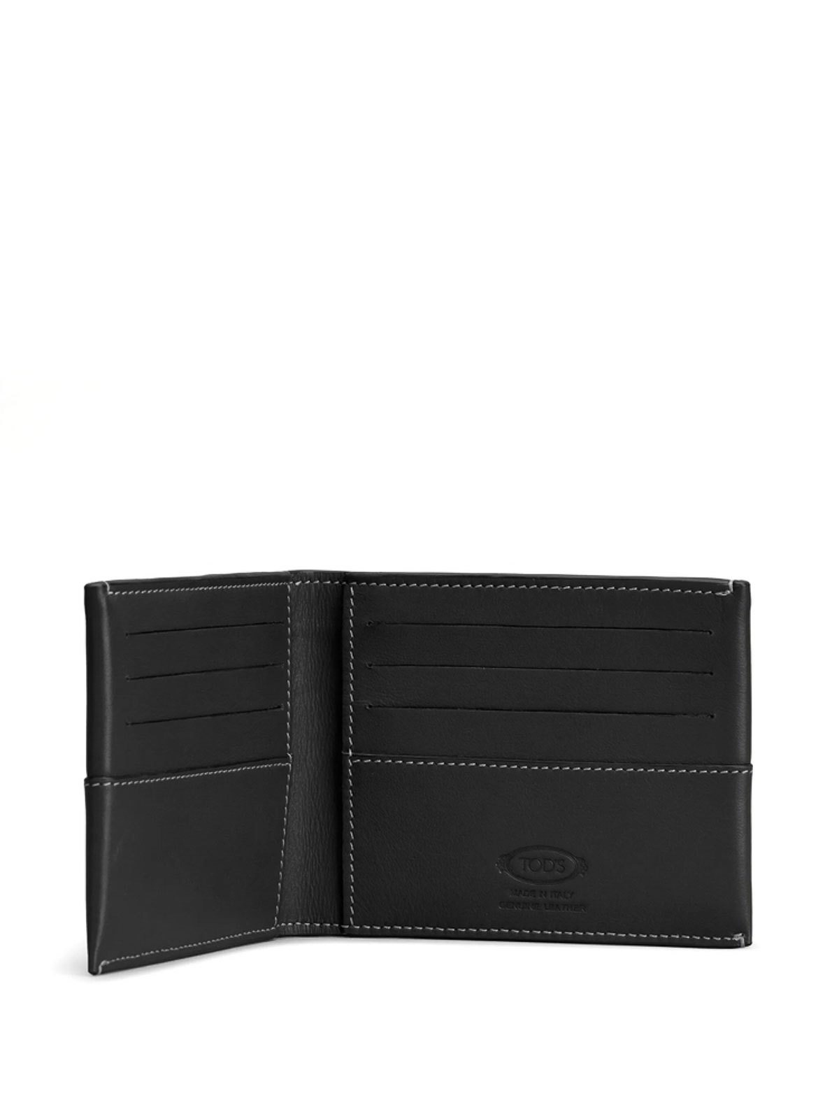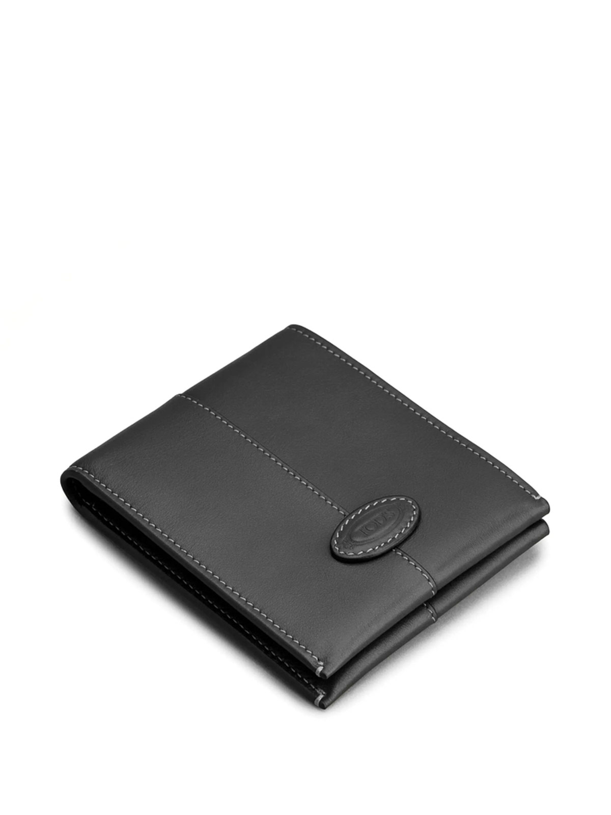 Black bi-fold design internal card slots appliqu logo contrast stitching