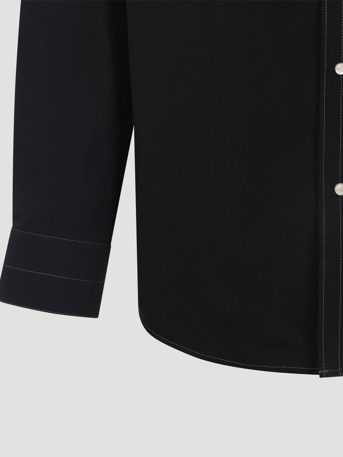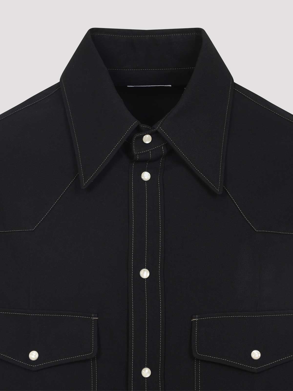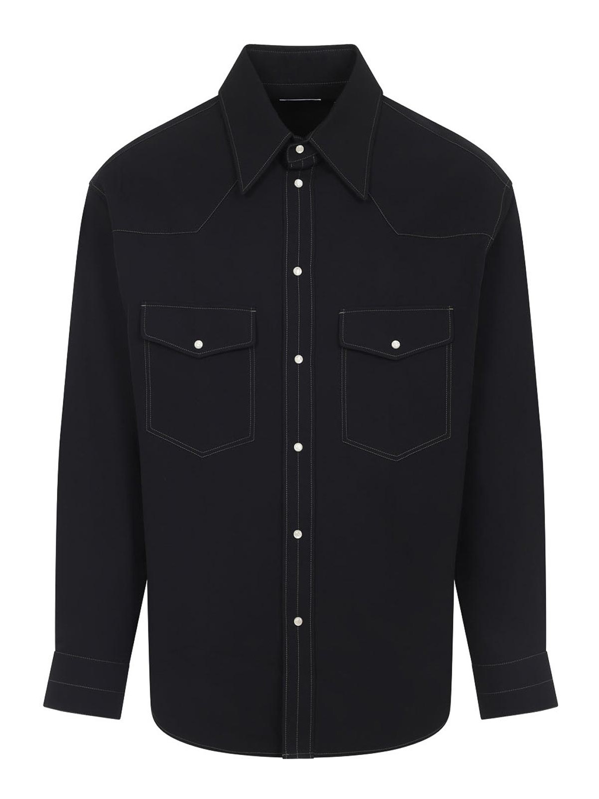 Lemaire black western shirt pure black shirt pointed collar buttoned chest flap buttoned pockets long sleeves buttoned cuffs straight hem