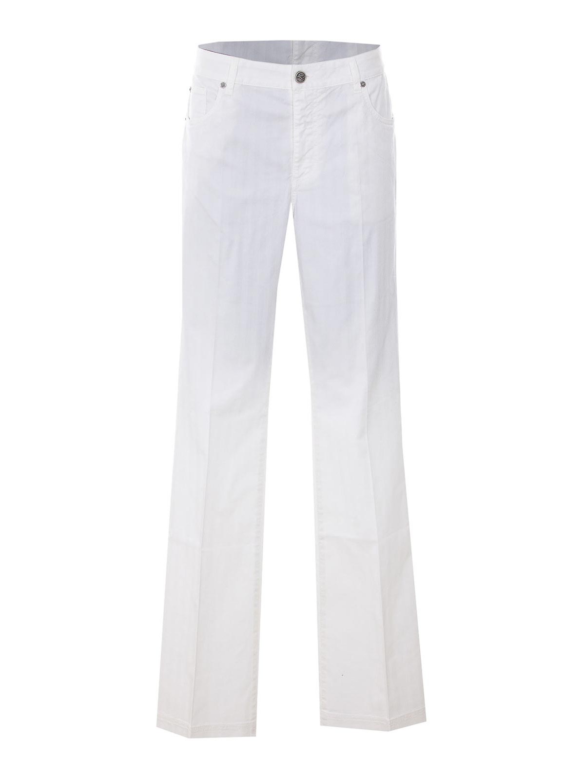 Etro white pants, zip and button closure, pockets, wide leg, high waist, tone on tone logo on back