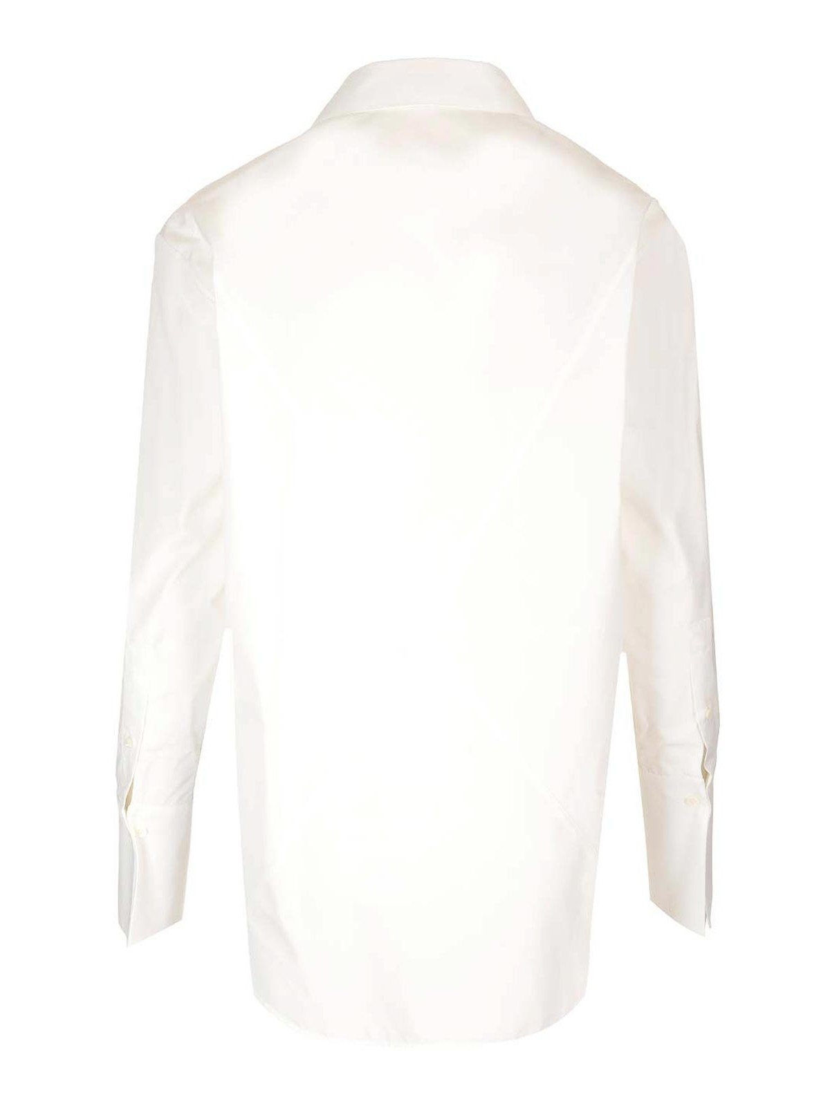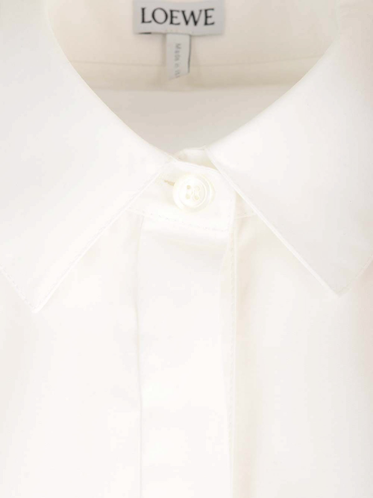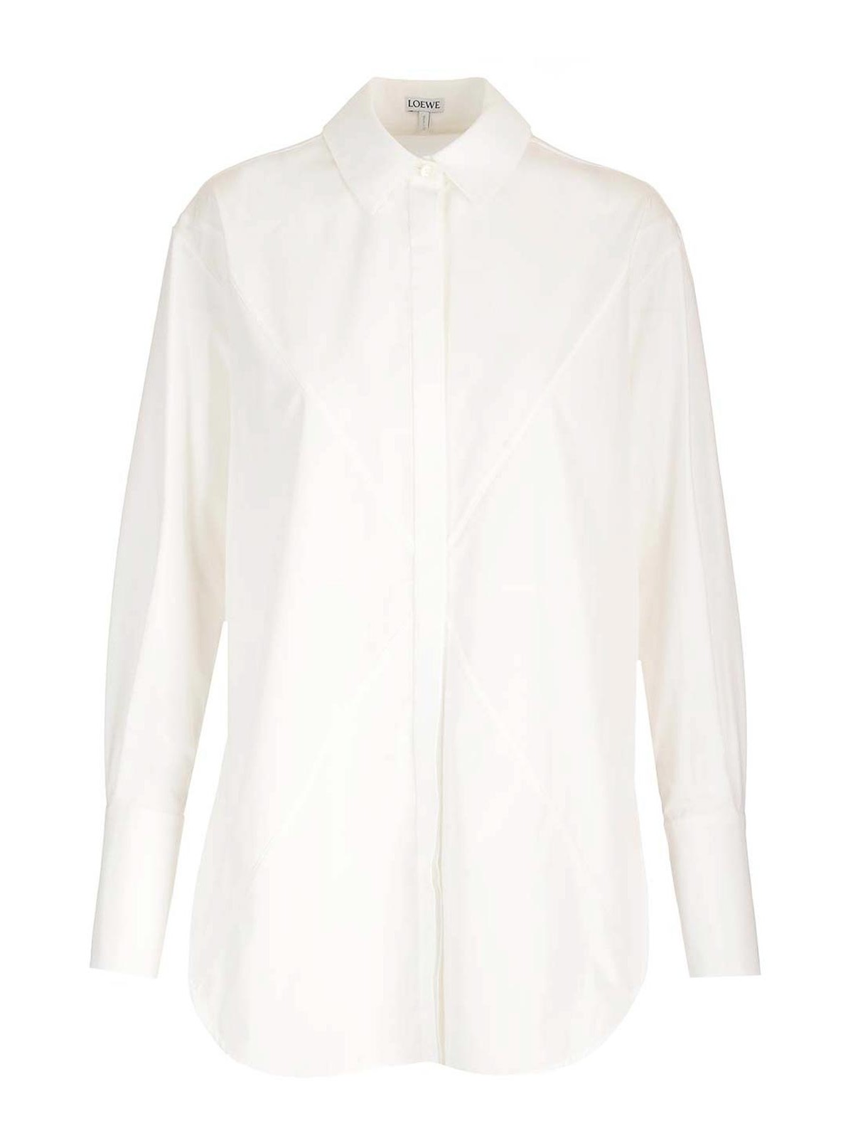 White puzzle fold shirt from loewe in cotton, regular fit, regular length, cutting technique that creates the distinctive geometric lines of puzzle fold, classic collar, long sleeves, buttoned cuffs, front closure with hidden buttons, rounded hem , side vents.
