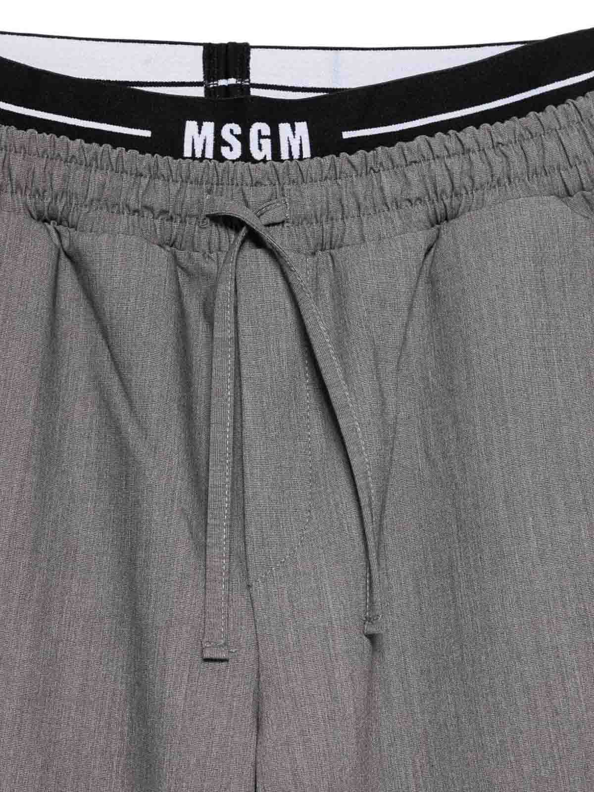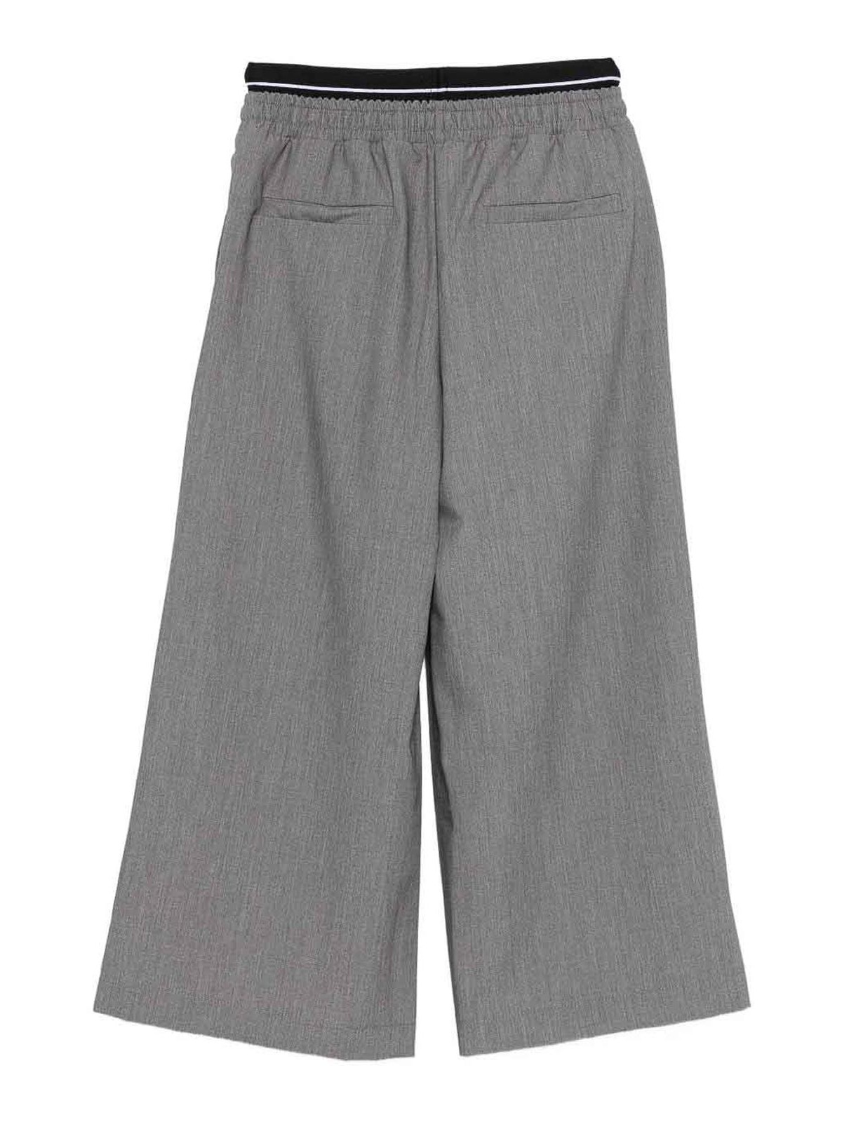 Wide leg trousers features gray elasticated waist with logo drawstring
