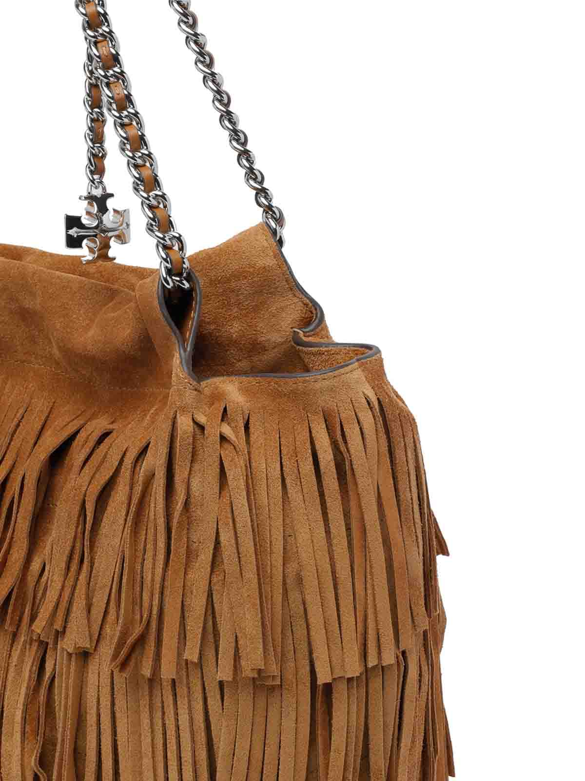 TORY BURCH: shoulder bags - Wild Tabacco Fleming Fringe Hobo Bag
