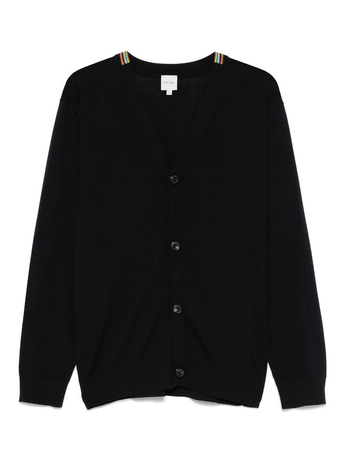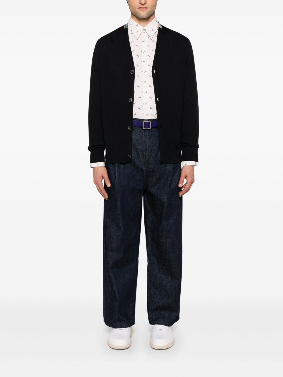 Midnight blue front button fastening ribbed cuffs and hem v-neck long sleeves
