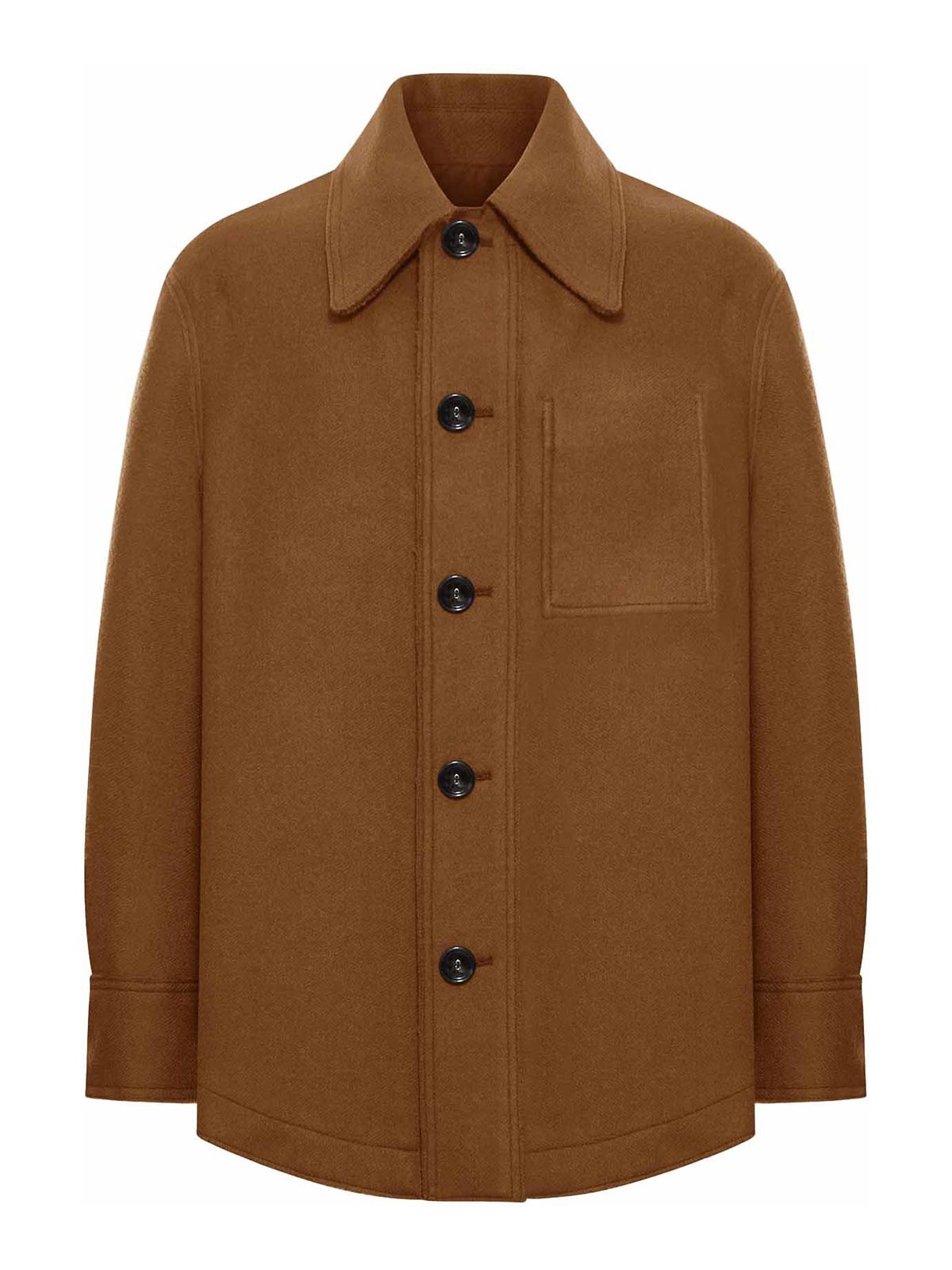 Classic collar, button, patch pocket, long sleeves, buttoned cuffs, curved hem, - color hazelnut