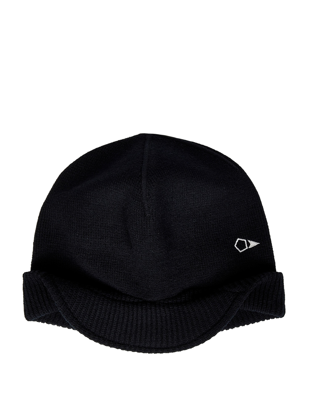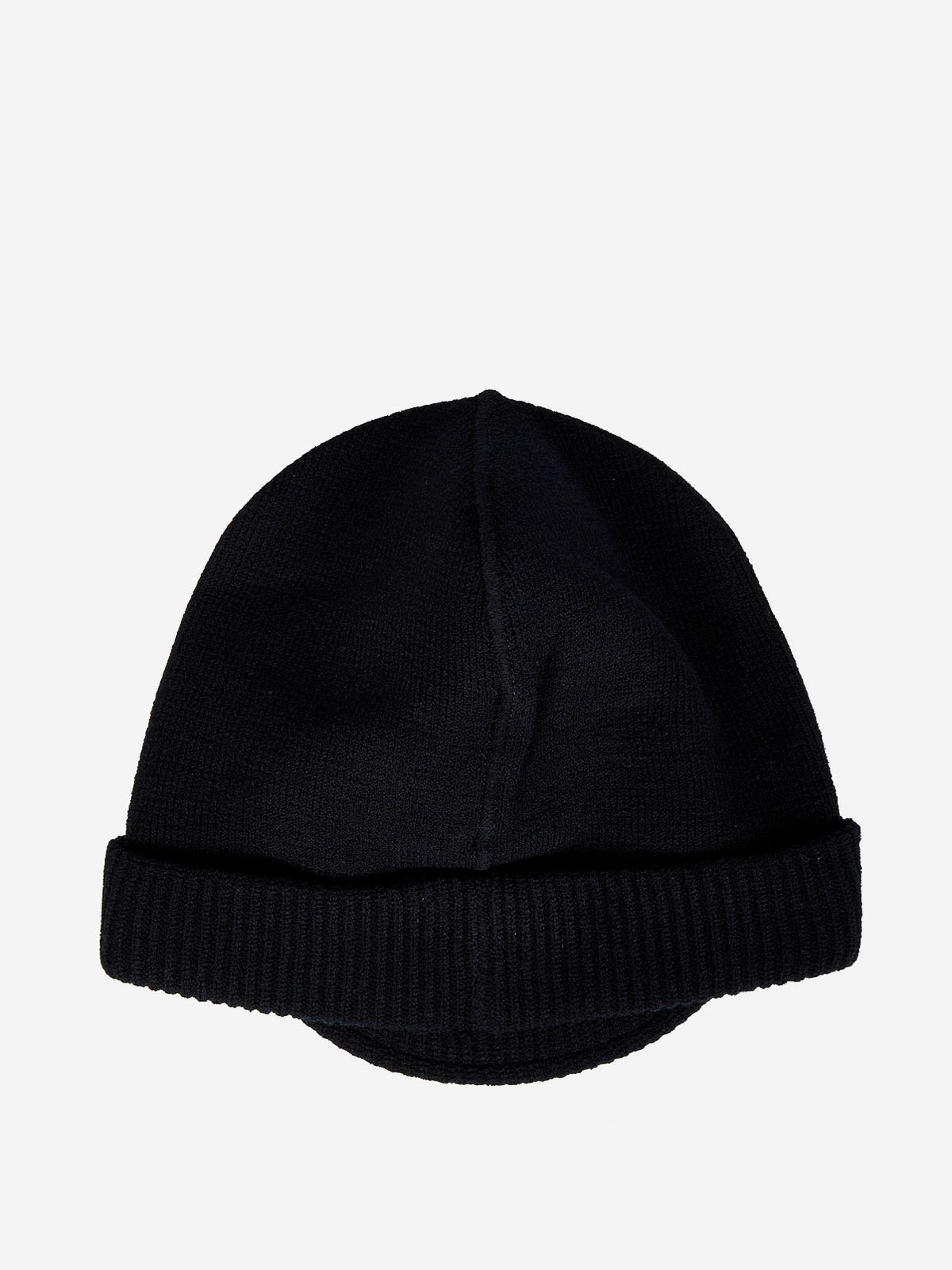 Small shadocontrasting embroidered graphic at front plain stitch head visor and shaped band in full rib; sides and back shaped for weather protection when unfolded 7 gauge black