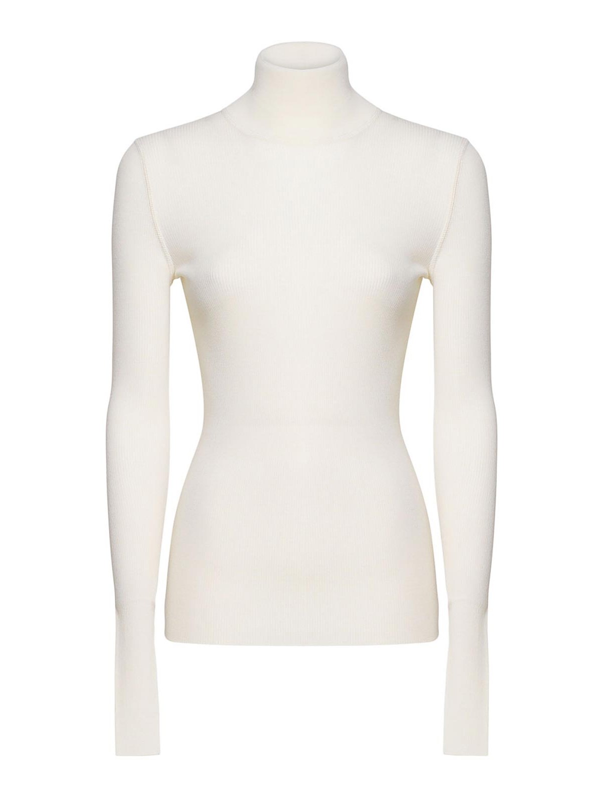 Wool knitted sweater, polo neck, long sleeves, ribbed edges,, colour ivory