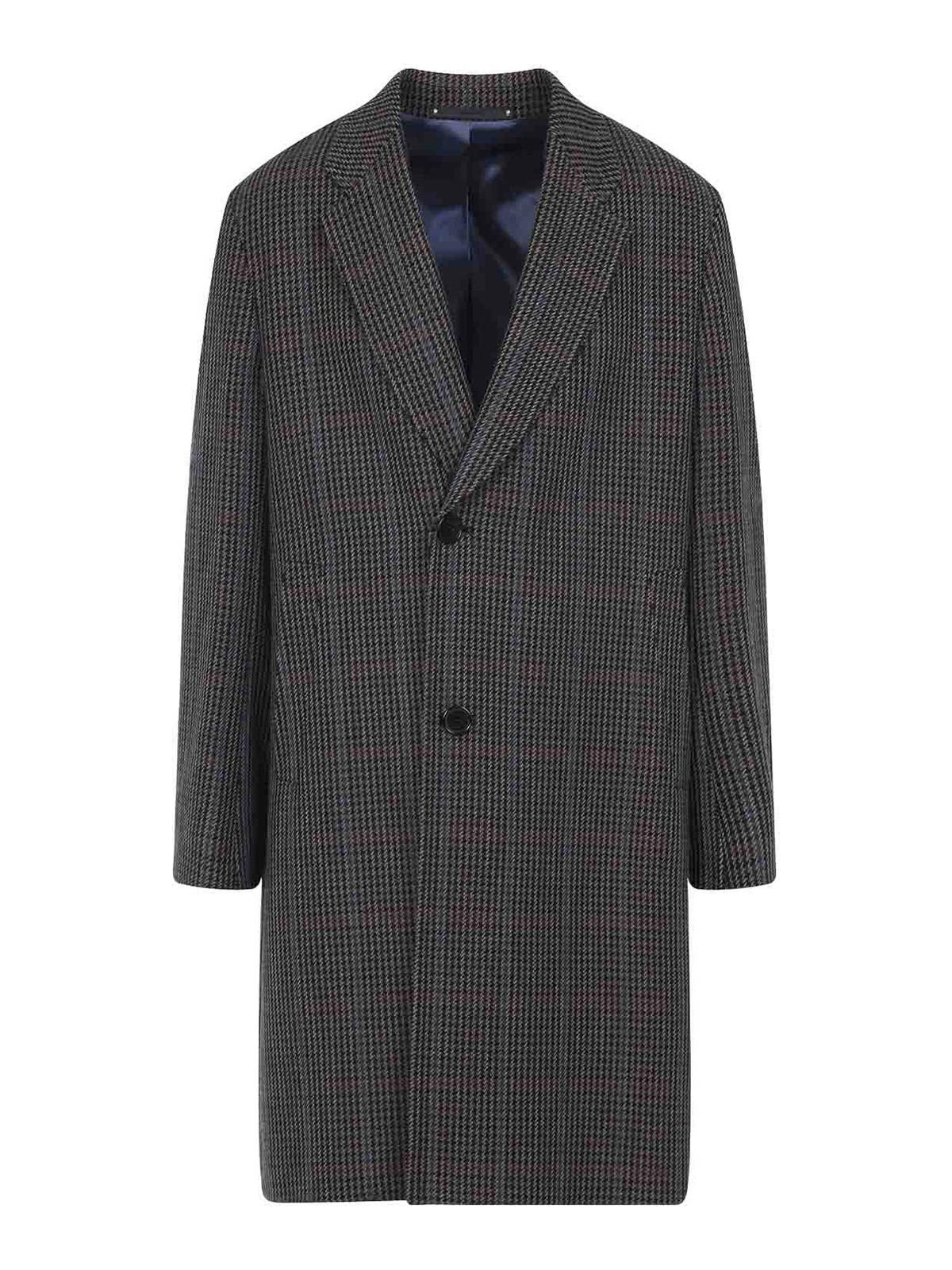 Paul smith mud overcoat mud brown blend checked pattern allover notched collar long sleeves button fully lined relaxed fit