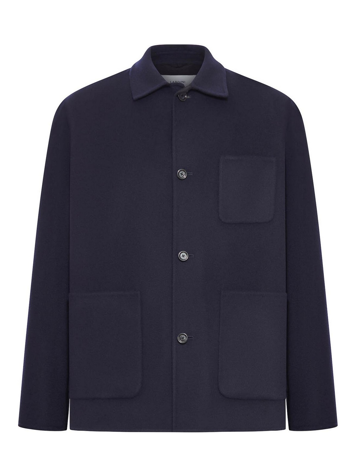 Classic collar, button, three patch pockets, long sleeves, straight hem, unlined, - color blue