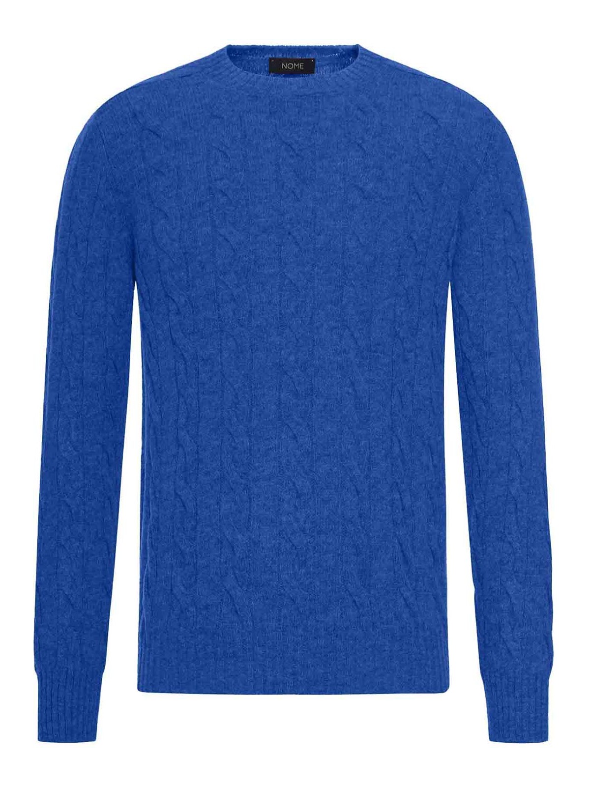 Wool sweater, crew neck, long sleeves, ribbed edges, cable knit, straight hem, blue