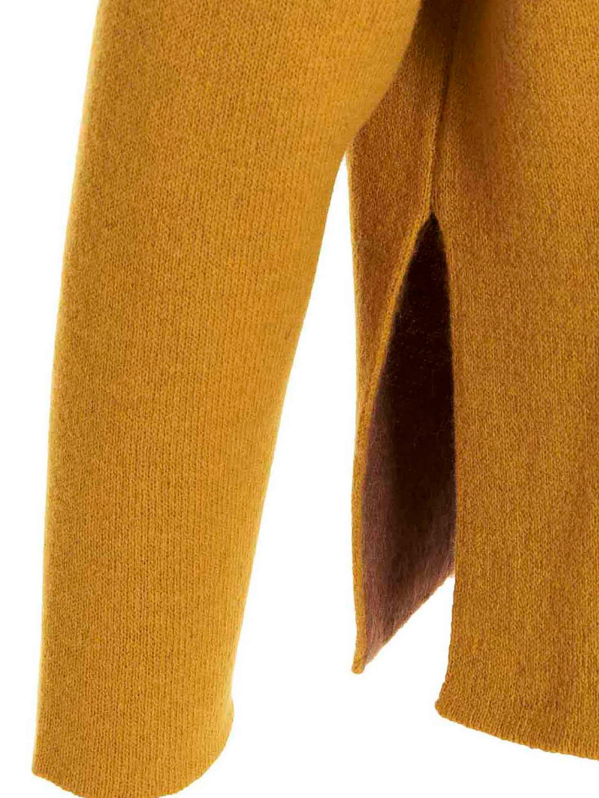 Wool blend, crewneck sweater featuring long sleeves and side split detail.