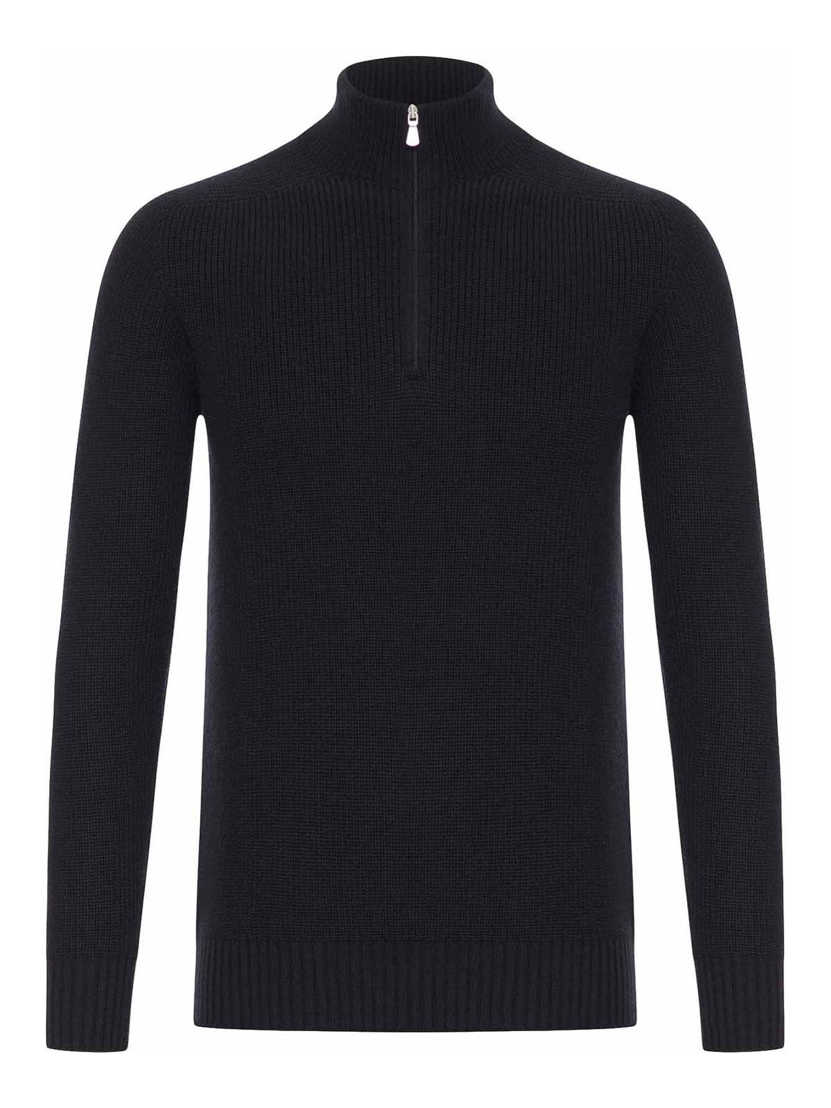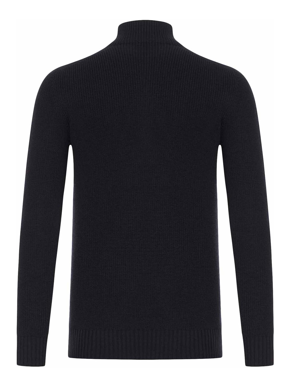 Wool turtleneck sweater with zip, high neck, long sleeves, front zip opening, ribbed collar, cuffs, and hem, 100% wool, regular fit, color: black