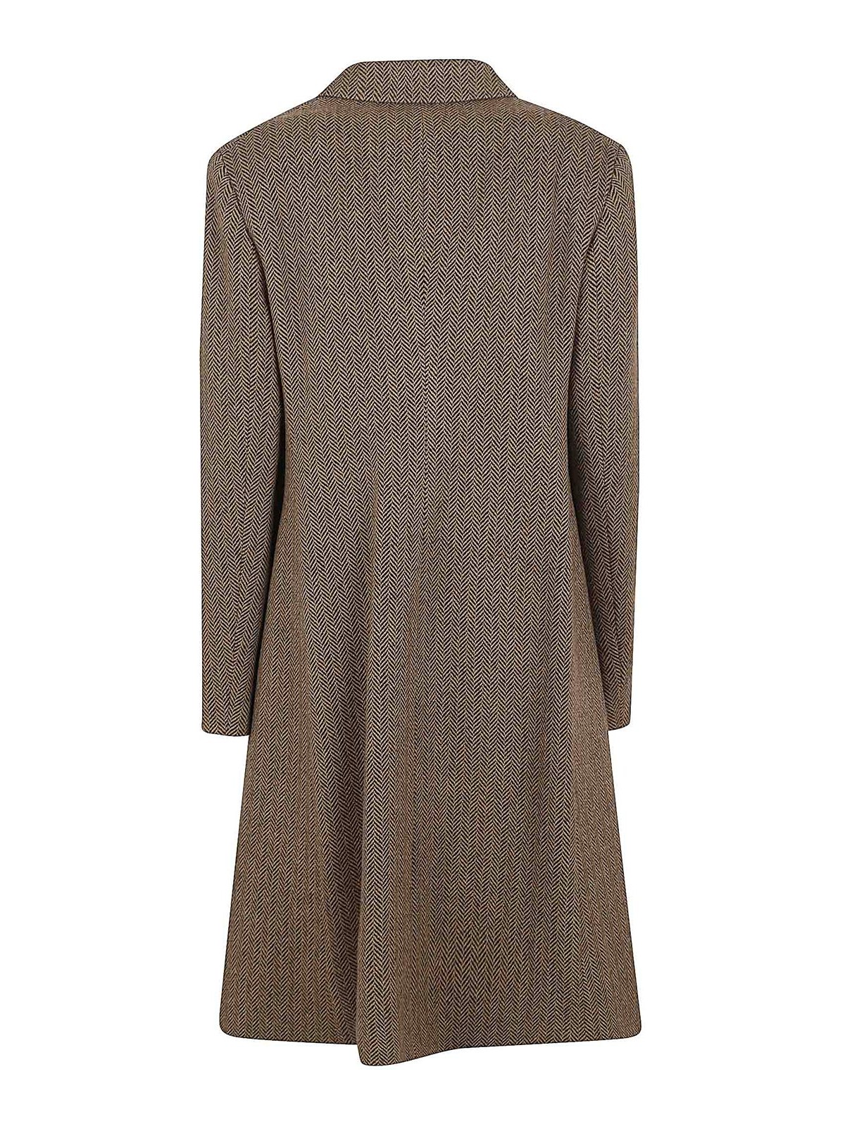 Fine herringbone tweed coat from Polo Ralph Lauren, single button closure, peak lapels, long sleeves, padded shoulders, two front waist flap pockets and an interior buttoned pocket on the left chest, pleats at the front and princess stitching at the back, fully lined, fitted at the waist and slightly flared from the waist down, mid-calf length.
